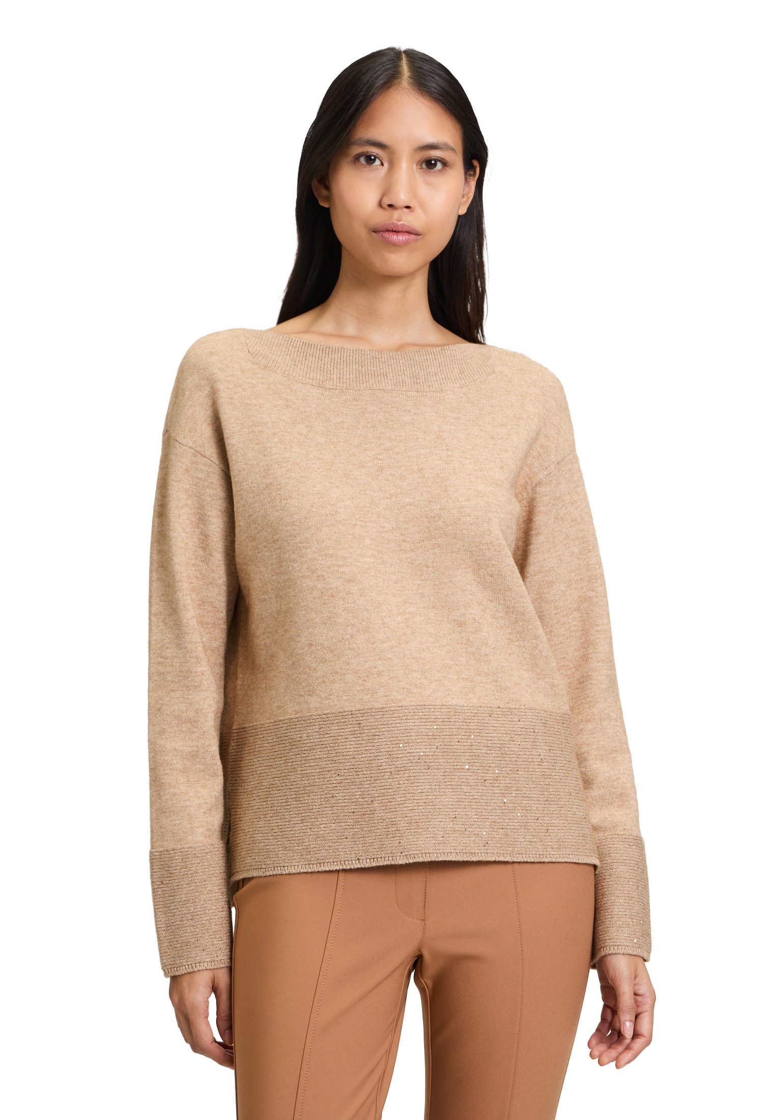 Entdecken Sie diesen lässigen Strickpullover mit funkelnden Pailletten-Details von Betty Barclay. Der U-Boot-Ausschnitt und die überschnittenen Ärmel verleihen ihm einen modernen Look, während das unifarbene Design ihn zu einem vielseitigen Begleiter fürden Alltag macht. Perfekt für entspannte Casual-Outfits mit einem Hauch von Glamour.