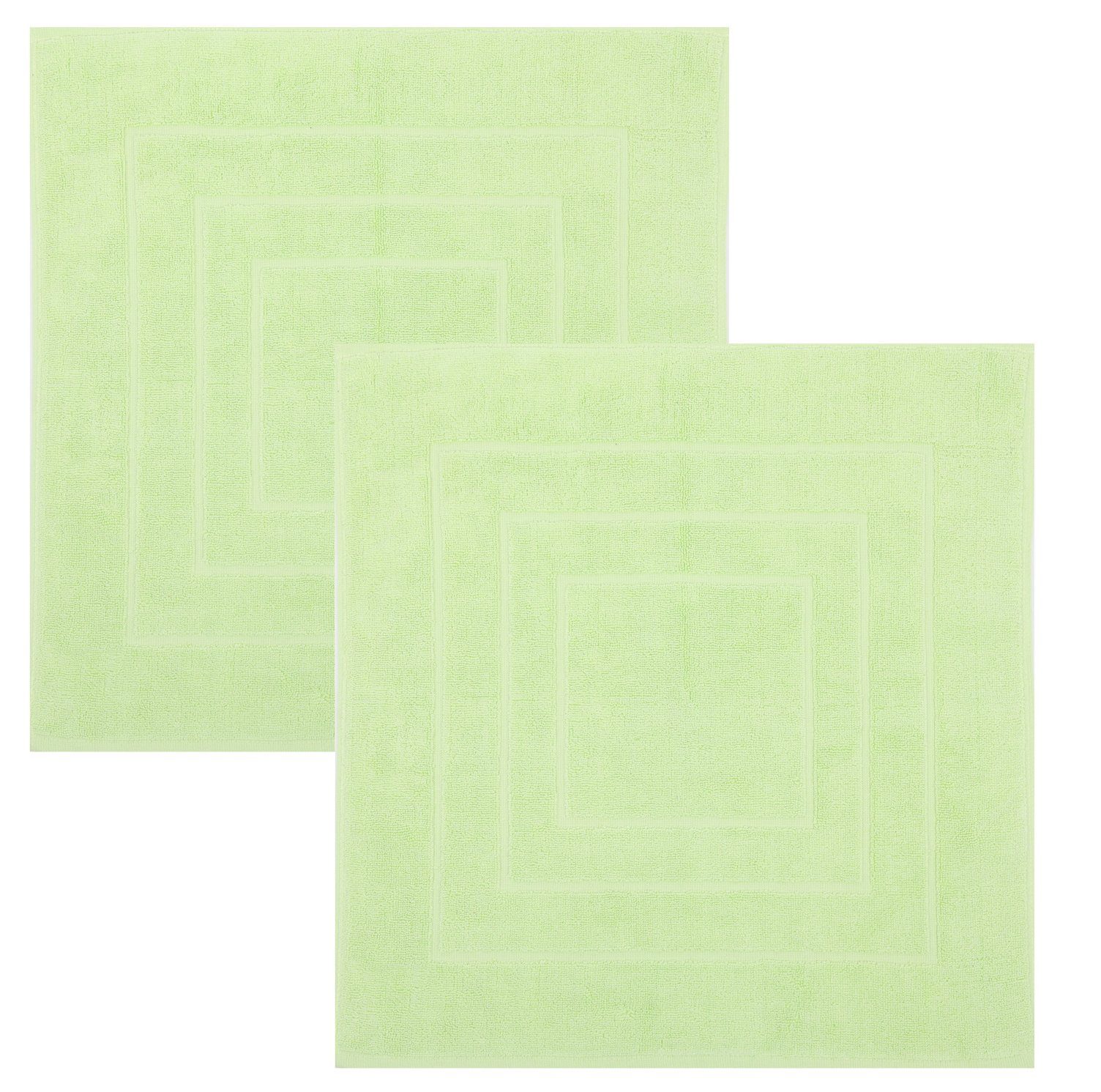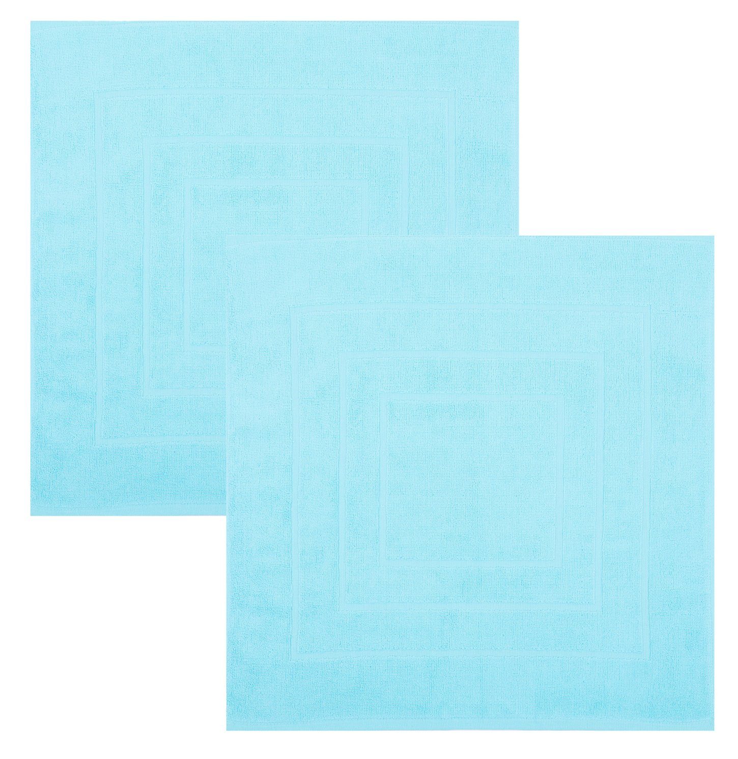 Die 2 Badvorleger sind sehr zu empfehlen. Die Farbe ist wie abgebildet, das Material ist angenehm weich und auch dick genug, um ausreichend Flüssigkeit aufzunehmen. Praktisch ist auch der Haken zum aufhängen.