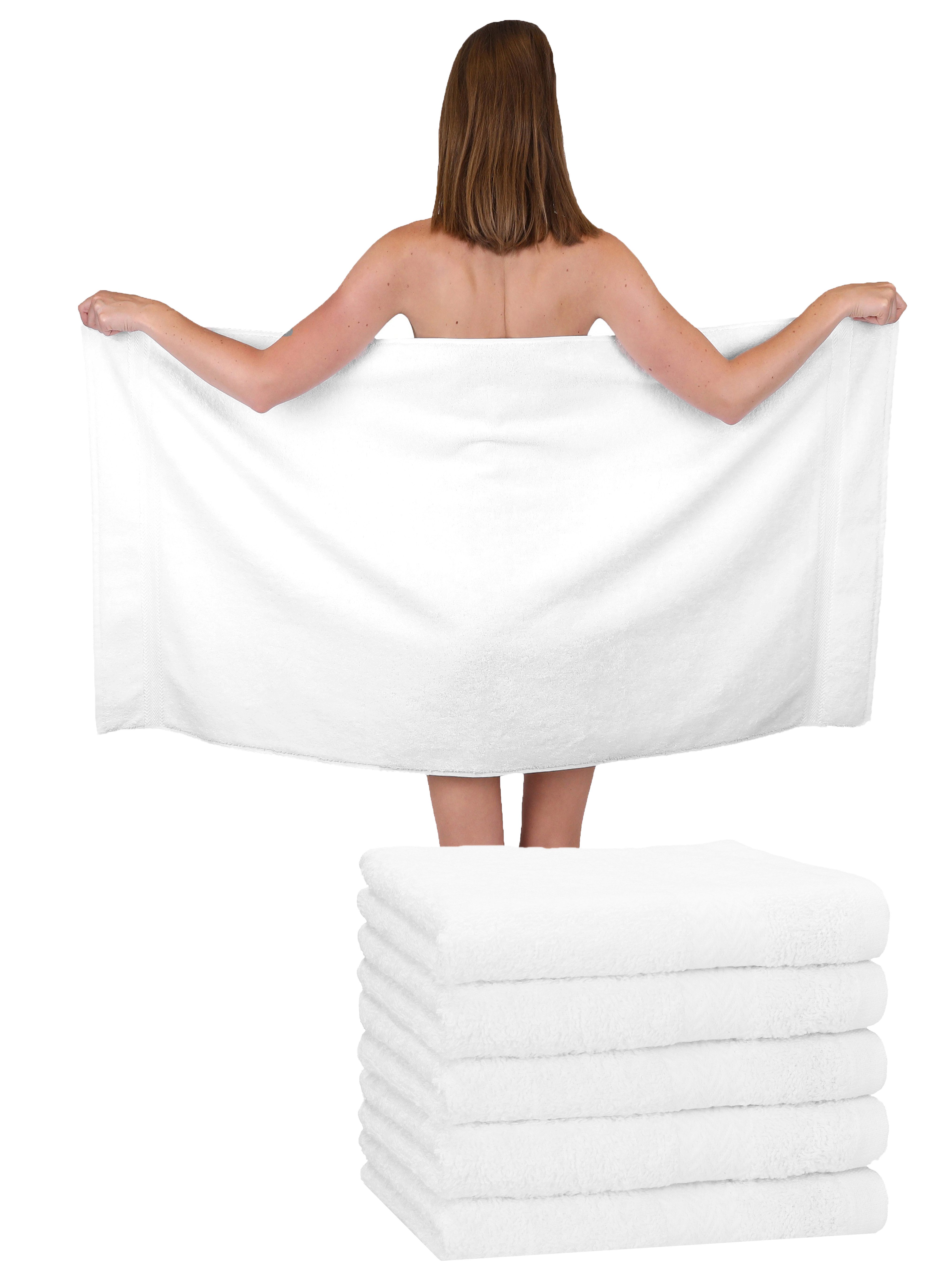 Betz 6 Stück Duschtücher PREMIUM Размер 70 cm x 140 cm 100% Baumwolle Duschtuch-Set Farbe weiß Das Duschhandtuch Badehandtuch Размер 70x140 cm bietet besten Wohlfühl Komfort durch seine besondere schwere Frottier Qualität Das Duschtuch Saunatuch Handtuch hat eine doppelte Bordüre und einen Handtuchaufhänger - Qualität 470 g/m² Die Walk Duschtücher Badetücher sind aus 100% Baumwolle - saugstark und strapazierfähig: 60°C waschbar und trocknergeeignet Die Serie Premium gibt es in vielen BASIC Farben und Größen sowie auch Badvorleger Verkaufseinheit: 6 Stück Duschtücher Frottee Größe: 70x140 cm Farbe weiß
