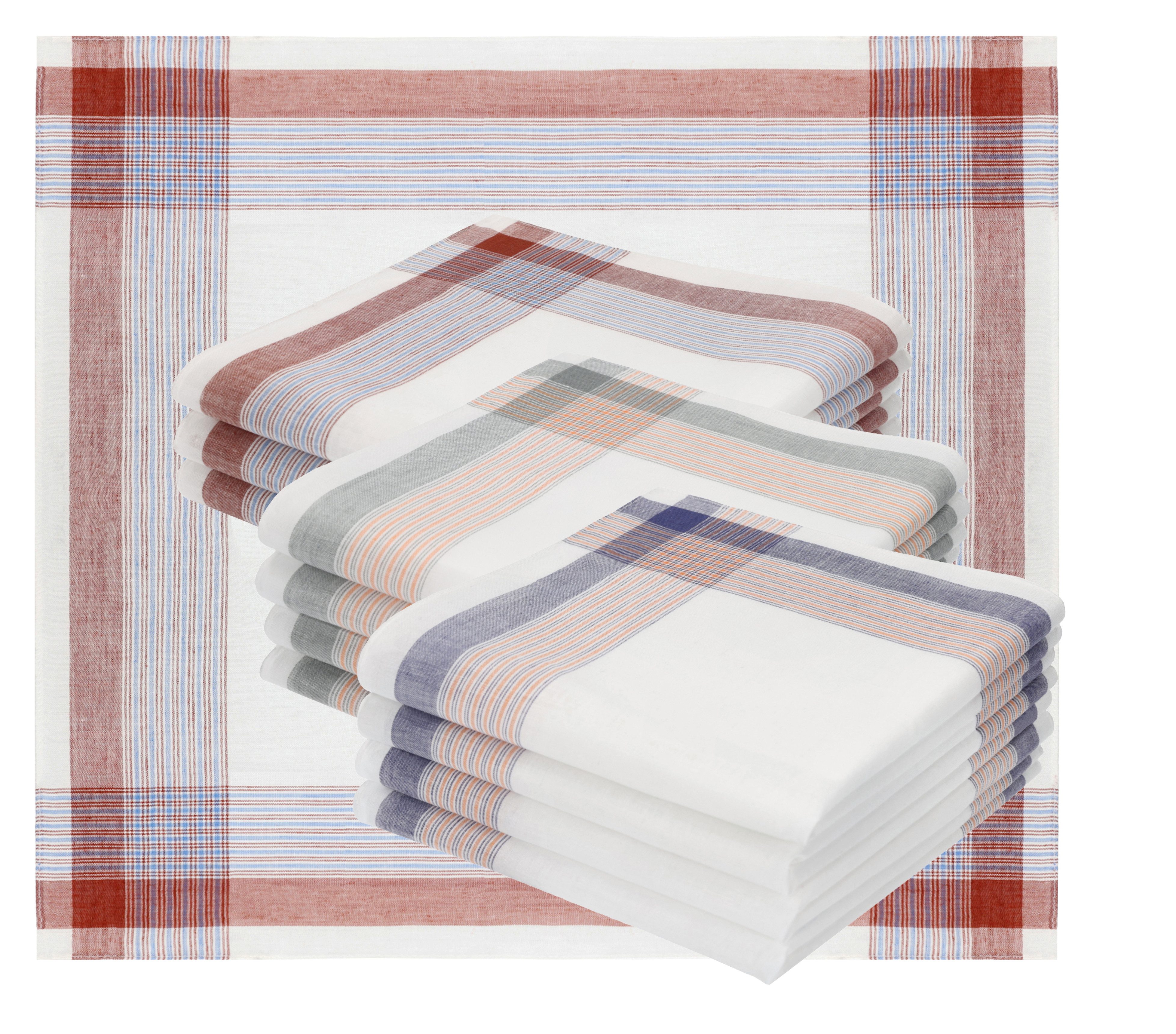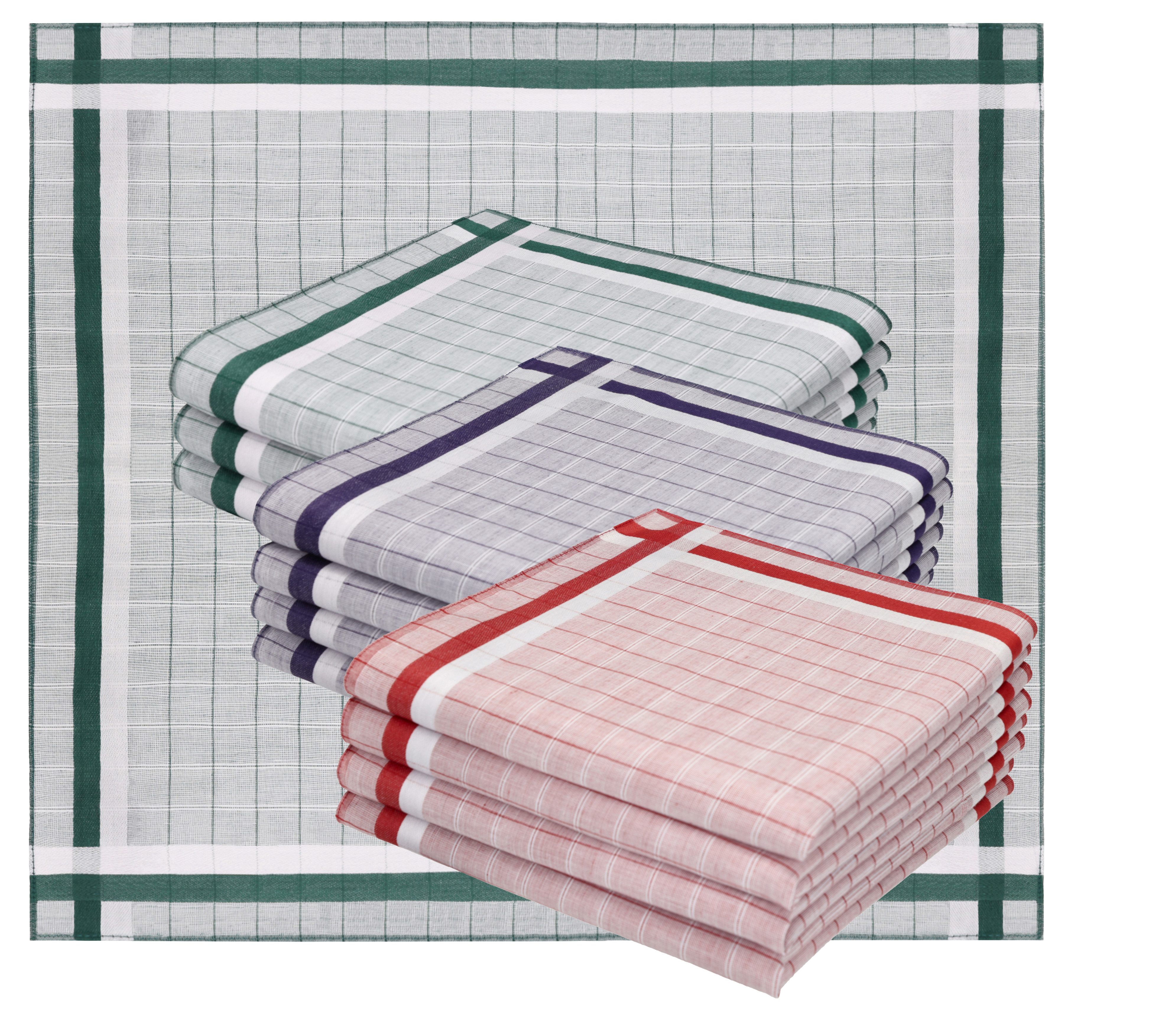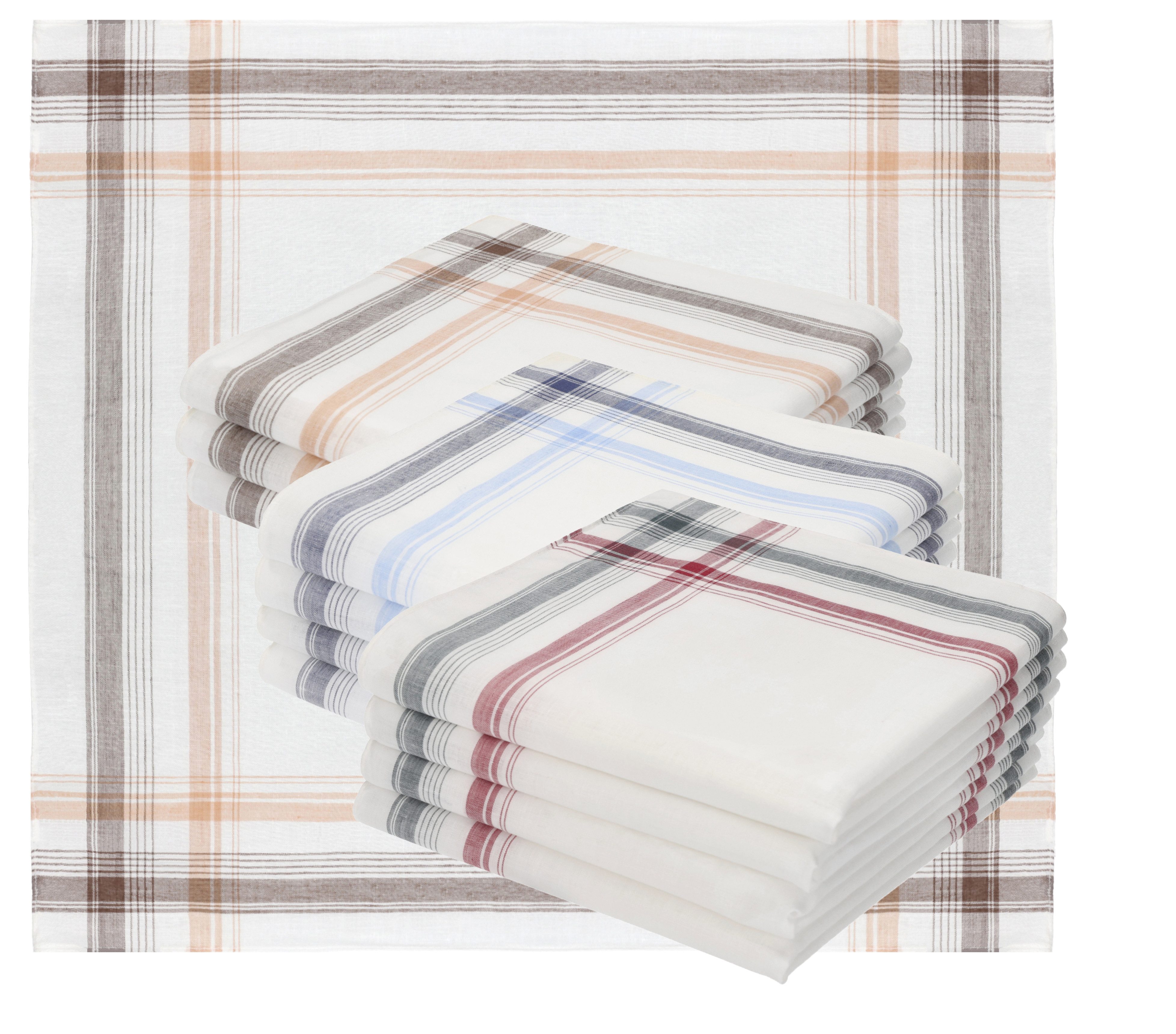 DETAILS: 12 Stück Stofftaschentücher / 100 % Baumwolle / maschinenwaschbar bei 60°C und trocknergeeignet / verschiedene Farben - Designs