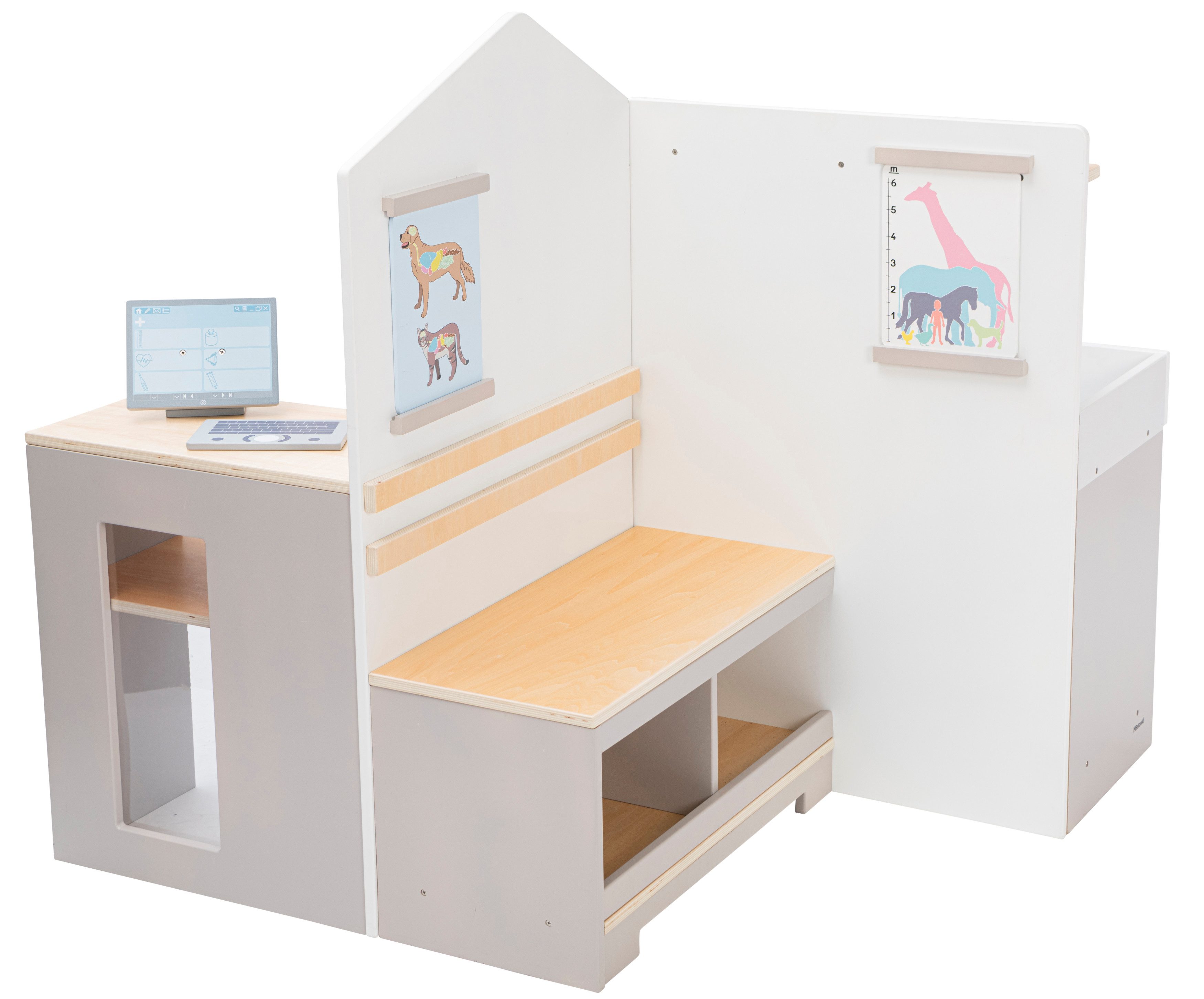 Das Rollenspiel-Center eröffnet Kindern eine lebendige Bühne für fantasievolle Geschichten und soziale Lernerfahrungen. Ob als Arztpraxis, Tierklinik oder kreative Fantasiewelt – das detailreiche Möbelstück lädt dazu ein, Alltagssituationen nachzuspielen, Verantwortung zu übernehmen und in verschiedene Rollen zu schlüpfen. Dabei lernen Kinder, sich in andere Perspektiven hineinzuversetzen, gemeinsam Lösungen zu finden und ihre sprachlichen Fähigkeiten im Spiel zu entfalten.
