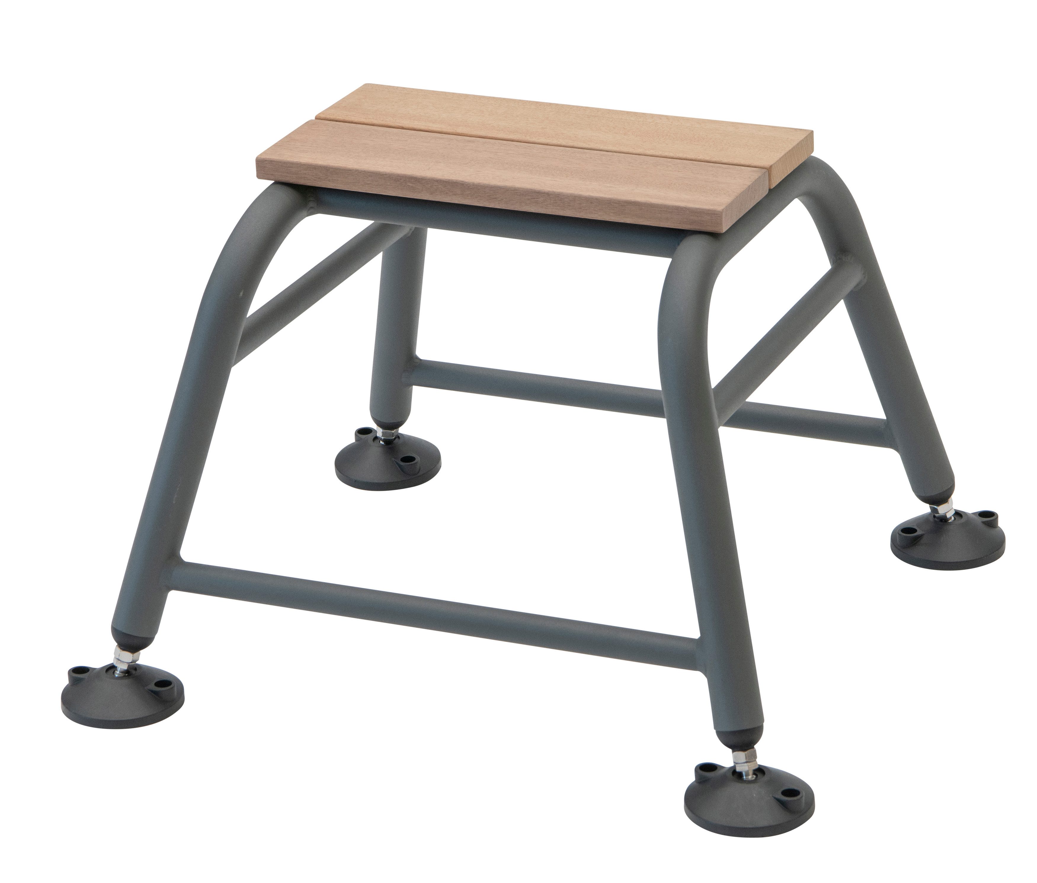 Das stabile Gestell aus pulverbeschichtetem Aluminium ist wetterfest, rutschhemmend und auf den regelmäßigen Einsatz im Freien ausgelegt. Die massive Plattform aus widerstandsfähigem Bangkirai-Holz überzeugt durch hohe Belastbarkeit und Langlebigkeit. Selbst bei intensiver Nutzung im Alltag bleibt der Trapezbock standfest und sicher. Durch seine robuste Konstruktion ist er für verschiedenste Witterungsverhältnisse geeignet – ideal für Einrichtungen, die Wert auf langlebige Qualität legen.