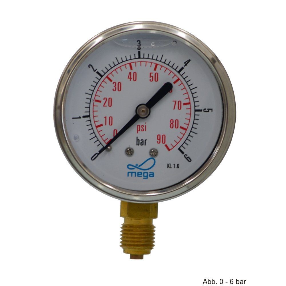 bevo Rohrverbinder Glyzerinmanometer, AG, Anschluss 1/4", unten, -1 - 15 bar, Gehäuse 63