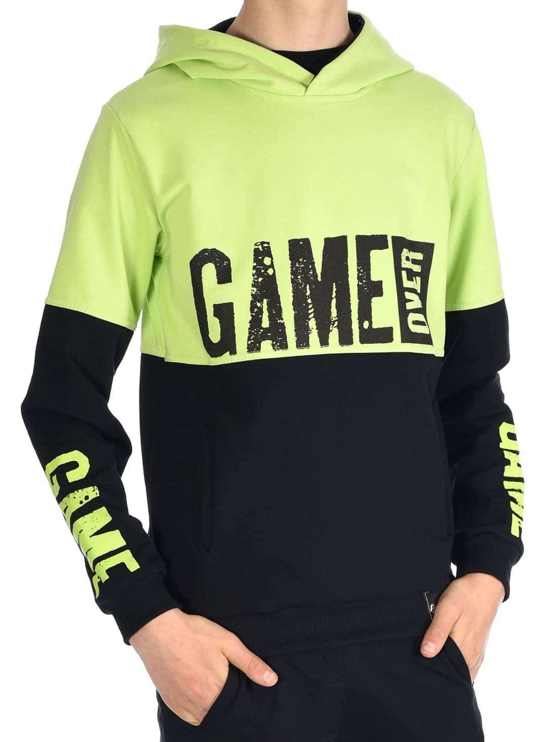 BEZLIT Jungen Kinder Hoodie Game Over 30043 Die Sweatjacke von Bezlit ergänzt die Alltagsgarderobe mit jeder Menge Individualität und Charakter. Zunächst fällt garantiert der große GAME OVER Frontaufdruck ins Auge, der für die sportliche Optik des Modells sorgt. Впередe, kleine Prints finden sich auch auf dem Ärmel und hinten auf den Unterrücken. Aber auch die kontrastierenden Nähte an den Seiten und auf den Schultern sind dezente, aber wirkungsvolle Hingucker. Abgerundet wird das Gesamtbild der Kinder Jungenjacke im Loose-fit von Seitenfront Taschen und einer Kapuze. Für ein gelungenes Outfit werden einfach ein Paar Sneakers und Stoffhose dazu kombiniert. Passende T-Shirts, Stoffhosen und Shorts, ebenfalls mit dem YES Aufdruck, finden Sie auch bei uns! Sie können die Jungen Sweat Jacken bei bis zu 40 Grad in der Waschmaschine, problemlos waschen. Unsere Hoodies mit Reißverschluss gibt es in vielen Farben und Größen. Dank 80% Baumwolle und 20% Polyester, fühlt sich unser Jungen Kurz Arm Shirt sehr angenehm auf der Haut an und garantiert tolle Tragfähigkeit. Kein Wunder, dass man die Kinder Jungen Sweatjacke von Bezlit am liebsten jeden Tag tragen möchte.