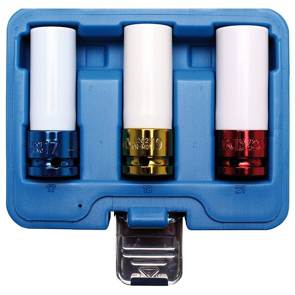 BGS Steckschlüssel Schlagschrauber-Einsätze, 1/2", 3-teilig, 17-21 mm