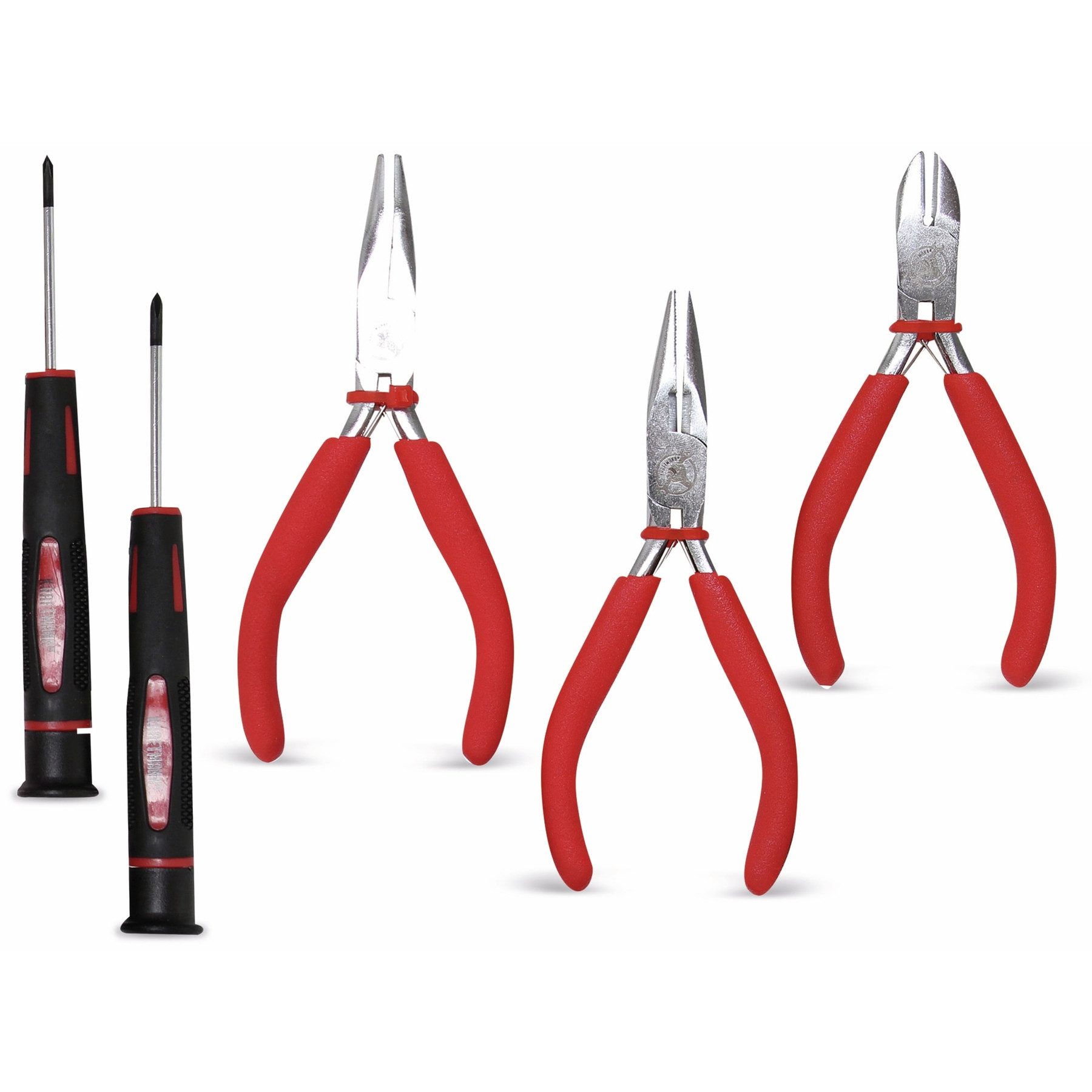 • Enthält 1x PH1 Schraubendreher, 1x Schlitzschraubendreher, 1x Seitenschneider, 2x Spitzzangen