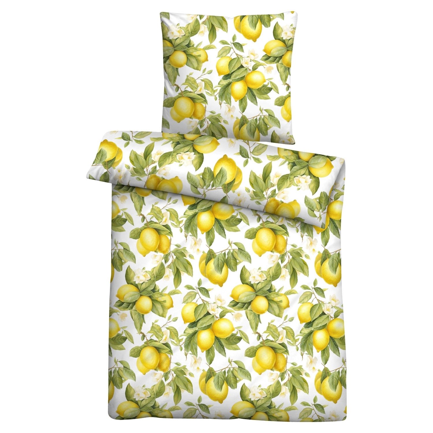 Die Renforce-Bettwäsche ZITRONE von biberna vereint ein frisches Design mit höchster Qualität. In den Farben Weiß, Gelb und Grün gehalten, ist sie mit einem schönen Zitronenmotiv verziert. Hergestellt aus Baumwolle und mit einer Размер von 135 x 200 cm bietet sie angenehmen Komfort. Waschbar bis 60 °C und trocknergeeignet, sorgt sie für einfache Pflege und langanhaltende Frische.