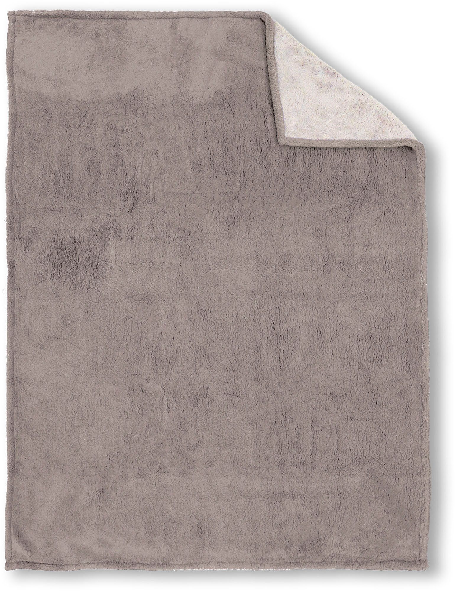 Die Besonderheit der Sherpa Wohndecke ist die Wendbarkeit. Die Decke besitzt zwei verschiedene Seiten, die beliebig genutzt werden können. Bei diesem Modell unterscheiden sich beide Seiten anhand ihrer Stoffdicke. So kann bei kalten Tagen die dickere Seite und bei kühlen die dünnere Seite verwendet werden.