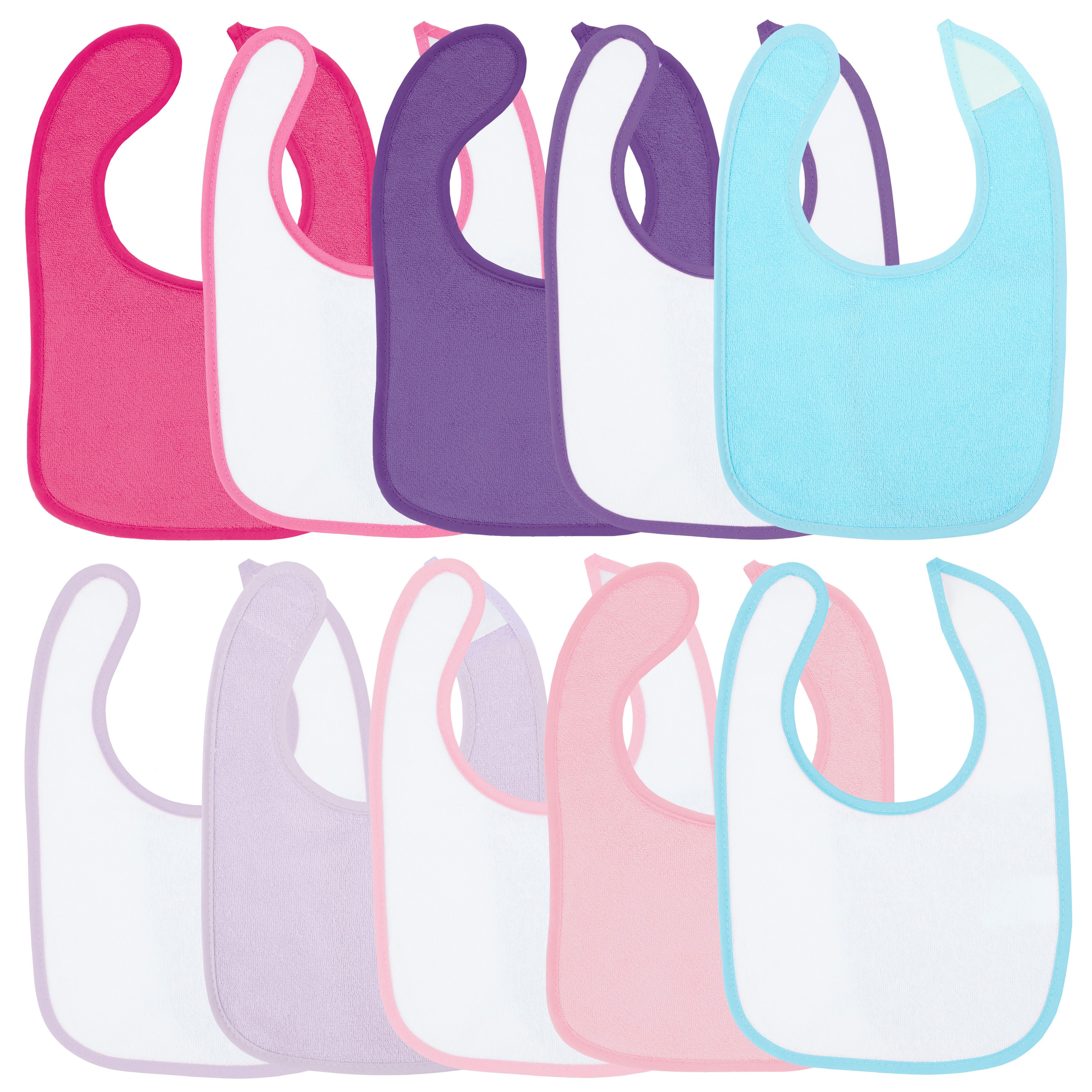 Diese schönen Lätzchen von Bieco bringen farbige Freude an den Esstisch. Im Set enthalten sind zehn Lätzchen im fröhlichen Farbdesign. Die Baby Bibs eignen sich für Jungen sowie für Mädchen. Jedes Latz Baby hat einen praktischen Klettverschluss und hat mit dem Maß von etwa 29x21 cm die Ideale Размер für Deinen Spatz vom Baby bis zum Kleinkind Alter. Sie sind aus einem hochwertigem Material mix von 75% Baumwolle und 25% Polyester hergestellt und damit besonders flauschig sowie saugfähig. Die Unterseite ist mit einem wasserundurchlässigen Kunststoff versehen, womit beim Kleckern keine Feuchtigkeit zu Deinem Kind durchdringt. Die Lätzchen sind außergewöhnlich pflegeleicht und bei 30 Grad waschbar. Mit dem bezaubernd, schlichtem Design sind sie auch für den täglichen Gebrauch geeignet.