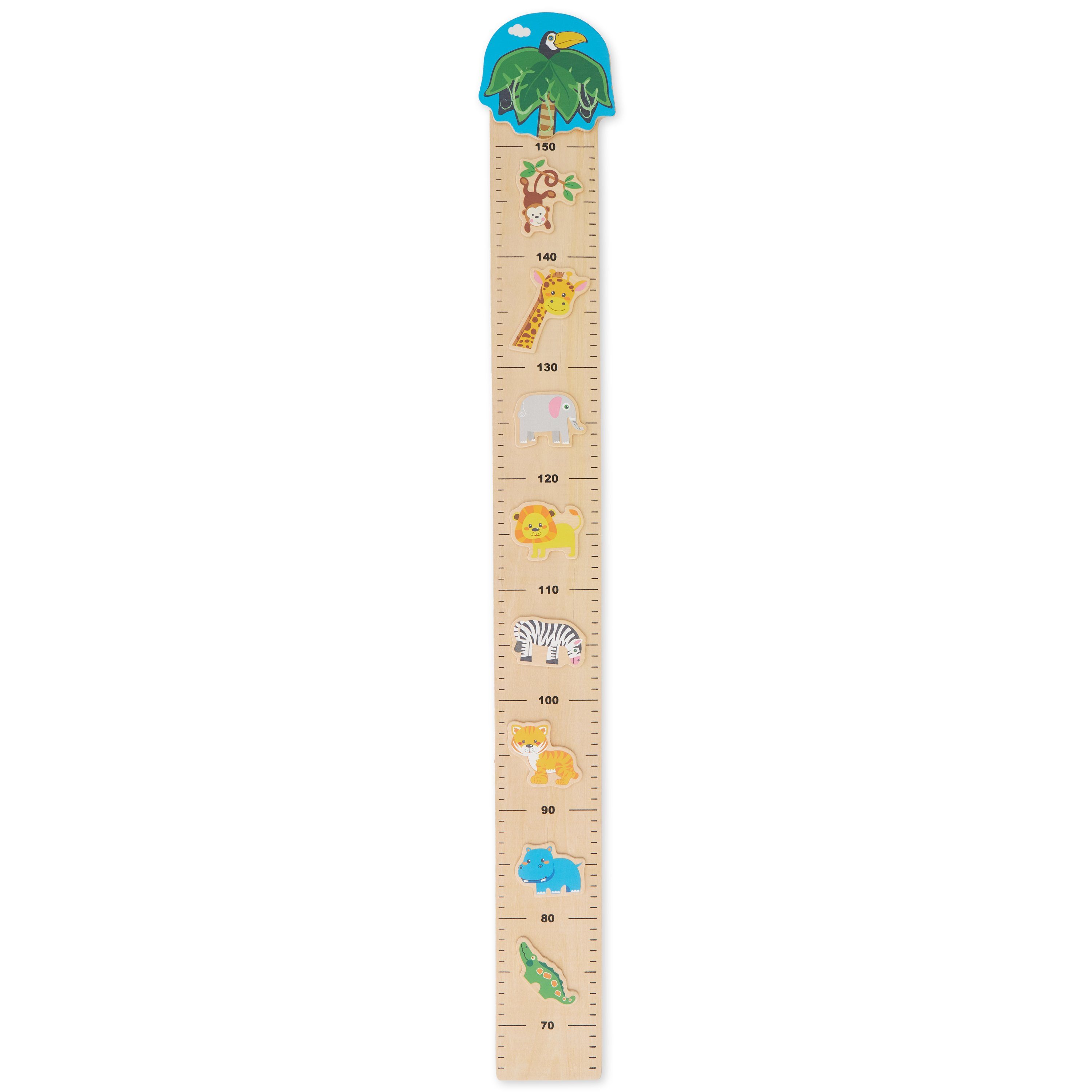 Mit der schönen Holz Messlatte im Zoo-Design, kannst Du das Wachstum Deines Kindes festhalten und gemeinsam mit Deinem Liebling wundervolle Erinnerungen schaffen. Ihr werdet später gerne zusammen darauf gucken, euch freuen und erinnern. Das niedlichen Zoo Tiere Motiv macht sie besonders dekorativ. Die Таблица размеров Kinder hat eine Metallöse zum Befestigen, mit welcher ein sicheres Anbringen an der Wand möglich ist. Die Kindermesslatte Holz ist so konstruiert, dass sie mit einem Abstand zum Boden angebracht wird. Sie ist aus Holz gefertigt, detailliert, sauber und Splitter-sicher gearbeitet. Sie hat Maße von ca. 97x10 cm und ist mit einer Skala von 0,65 m bis 1,5 m versehen. Die Messlatte für Kinder ist ebenfalls in den Motiven Verkehr und Bauernhof erhältlich – hier ist für jeden Geschmack etwas dabei.