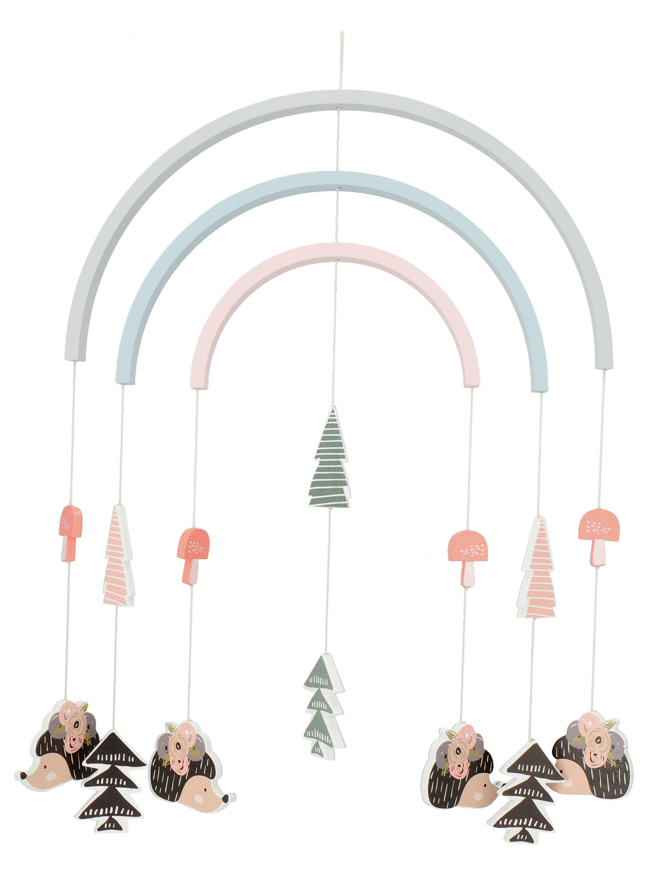 Das wunderschöne Holzmobile kommt im modernen Scandi- Design mit Igeln, Tannen und Pilzen. Eine perfekte Kombination von schönen Motiven, welche Deinem Baby viel zu entdecken geben. Die wundervoll, dezent aufeinander abgestimmten Farben machen das Mobile in jedem Raum zum großartigen Blickfang. Das Mobile hat eine Размер von etwa 28,5x28,5x50 cm und eignet sich hervorragend als Einschlafhilfe über dem Kinderbett, oder zum Beispiel auch als Ablenkung für den Wickeltisch.