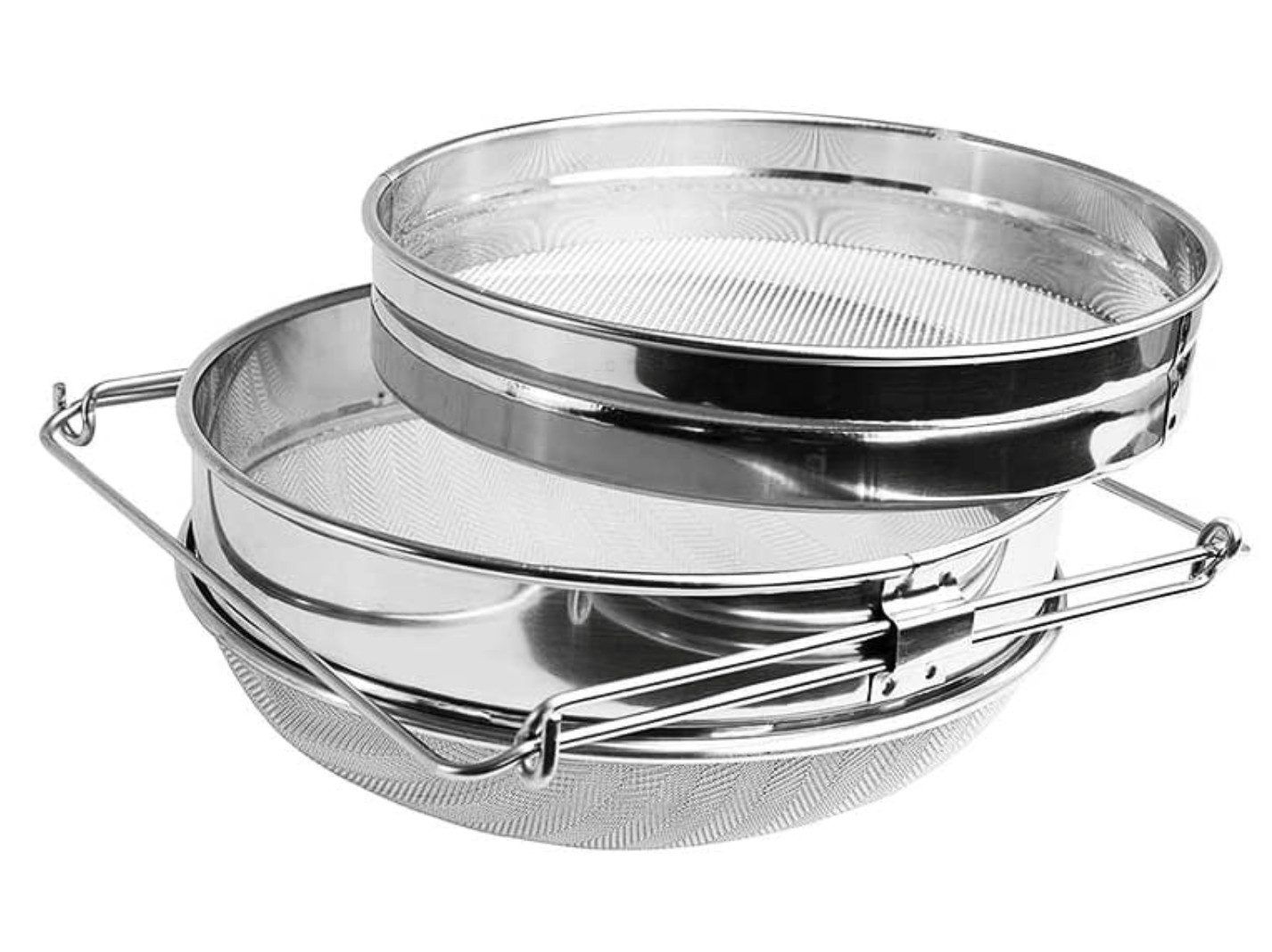 Doppelsieb mit Doppelsieb zum gründlichen Herausfiltern von Wachspartikel und sonstiger grober und feinen Partikeln