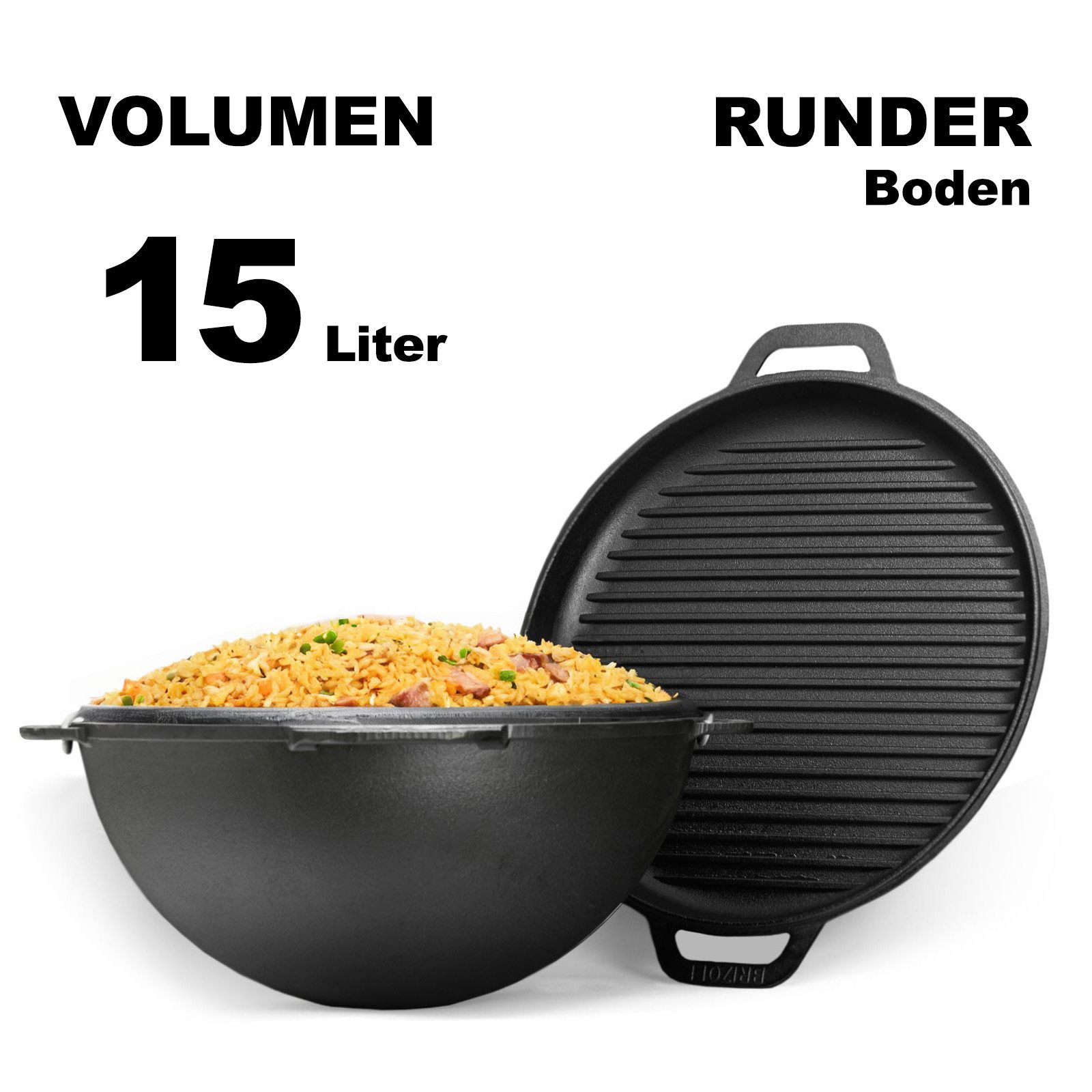 Schwenktopf Kazan aus Gusseisen mit Deckel-Grillpfanne
