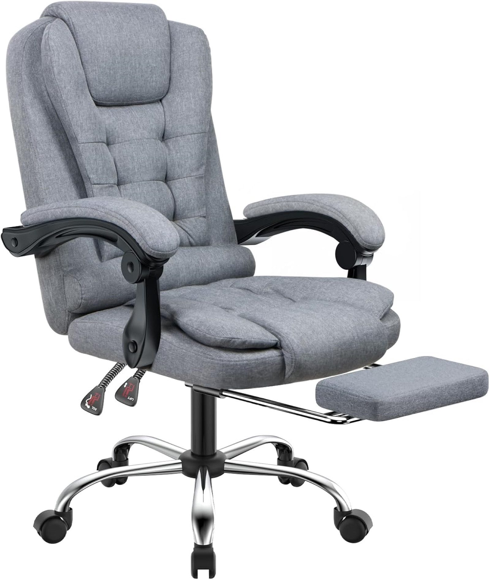 [Premium Material] Der Chefsessel besteht aus einer hochwertigen, verschleißfesten PU-Oberfläche und ist angenehm anzufassen und leicht zu reinigen. Der Sitz, die Rückenlehne und die Armlehnen sind aus weichem hochdichtem Schaumstoff gefertigt, um Ihnen ein angenehmes Sitzgefühl zu bieten. [Ergonomisches Design] Die Kurve des bürostuhl folgt den Linien Ihres Körpers, verteilt effektiv den Druck und reduziert den Druck auf Nacken, Schultern und Rücken, sodass Ihr Rücken den ganzen Tag über bequem und schmerzfrei bleibt und Sie sich länger wohl fühlen. [Flexibler Neigungswinkel] Die Gesamthöhe dieses Drehstuhls beträgt ca. 105-115 cm, er kann leicht an Ihre Körpergröße und -form angepasst werden. Mit der um 130° verstellbaren Rückenlehne und der ausziehbaren Fußstütze können Sie nach einem harten Arbeitstag ein bequemes Nickerchen machen und Ihren Körper entspannen. [Breites Anwendungsspektrum] Der drehstuhl sieht elegant aus, ist langlebig und praktisch, eignet sich für viele Orte wie Zuhause, Büro, Konferenzraum, Empfangsraum usw. und ist eine ideale Wahl für Arbeit, Studium und Unterhaltung. [Einfache Montage] Mit den erforderlichen Montagewerkzeugen und klaren Installationsanweisungen kann eine Person diesen Computerstuhl problemlos in 15–20 Minuten zusammenbauen. Wenn Sie Fragen haben, können Sie sich direkt an unser Kundenservice-Team wenden und wir werden Ihnen innerhalb von 24 Stunden eine effektive Lösung anbieten.