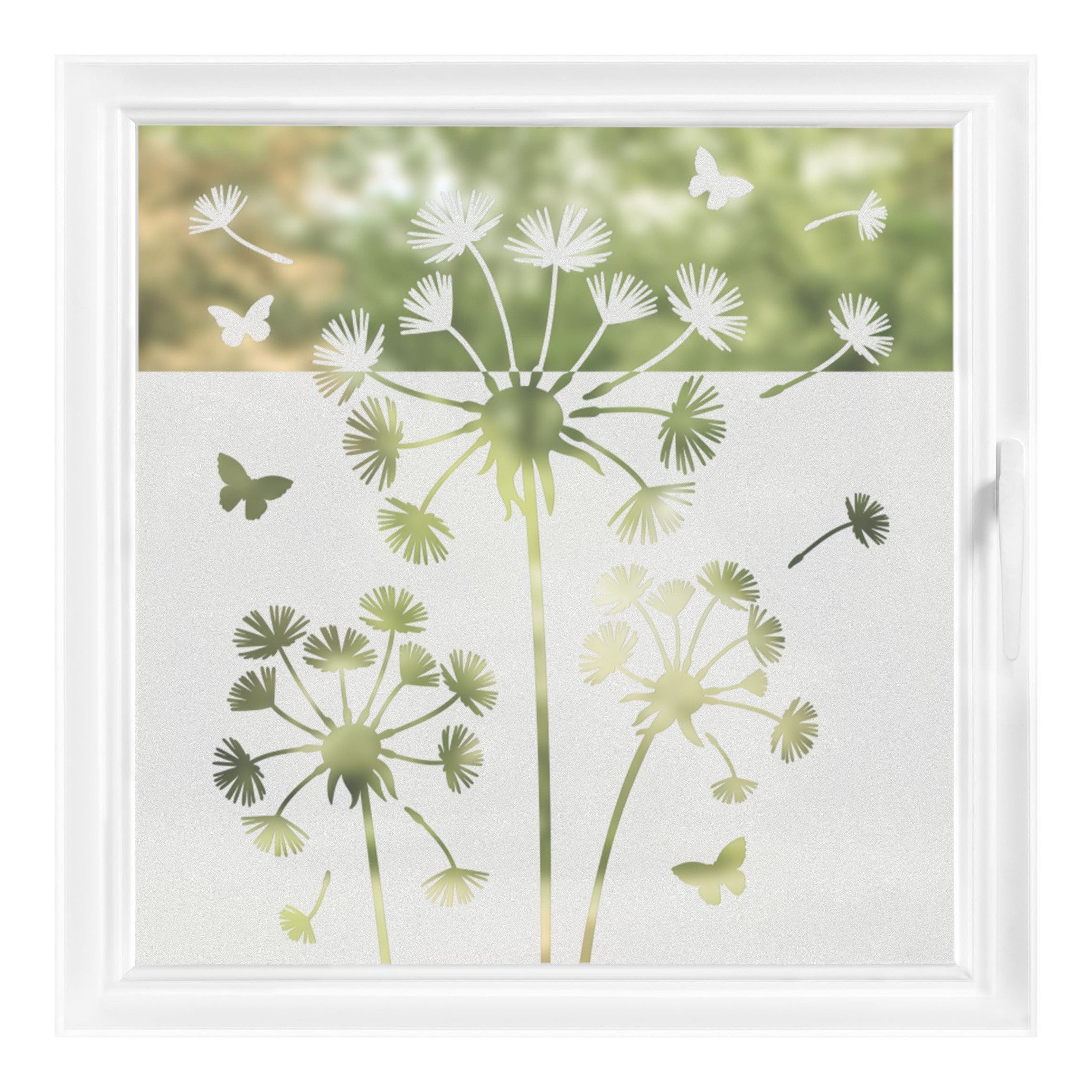 Hinweis Dekoration | Die milchige Sichtschutzfolie kann zur Dekoration auf Fenstern, Glastüren, Balkontüren sowie Haustüren verwendet und als Vogelschutz gegen Vogelschlag eingesetzt werden. Die Glas-Fensterfolie wird innen angebracht. Das moderne Motiv ist von außen gut sichtbar. |