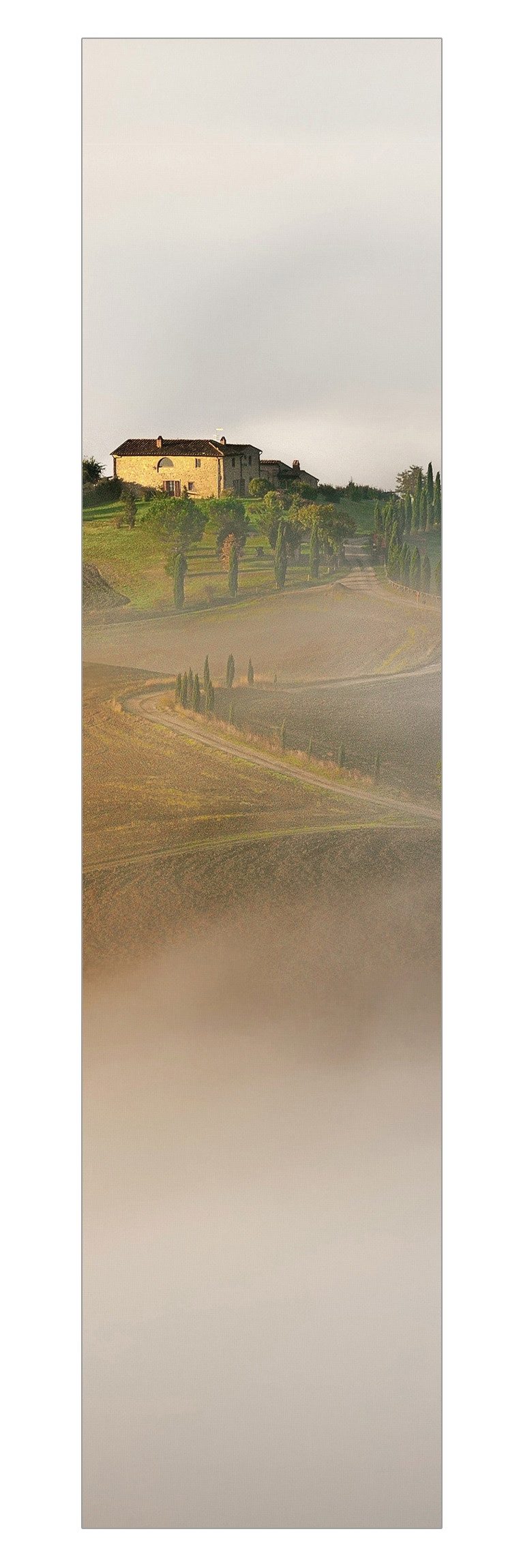 Bilderdepot24 Schiebegardine modern Flächenvorhang blickdicht Morgennebel Toskana (1 St), halbtransparent, Wohnzimmer große Flächengardine lichtdurchlässig für Klemm-System