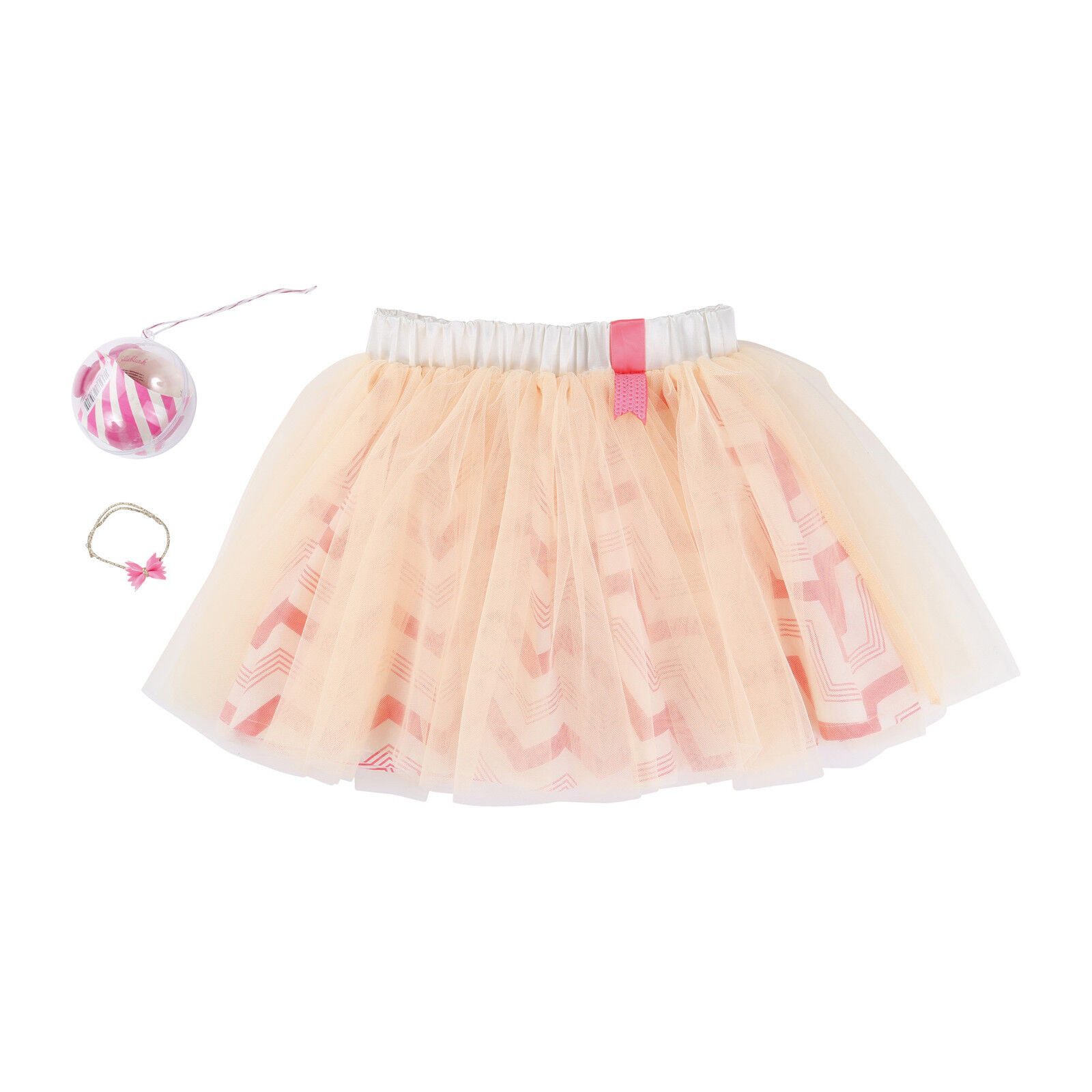 Billieblush Entdecken Sie wunderschöne, kombinierbare Teile in unserem Shop! Dieser traumhaft schöne Tüllrock der französischen Designermarke Billieblush ist ein wahres Highlight. Die äußere Farbe ist ein zartes Lachs, das durch das durchscheinende Futter mit rosa Streifen perfekt ergänzt wird. Ein bequemer, goldfarbener Glanz-Gummibund sorgt für den idealen Sitz. Das Baumwollinnenfutter und die zwei Lagen Tüll verleihen dem Rock eine wunderschöne Weite, sodass er herrlich schwingt und eine tolle Silhouette zaubert. Als besonderes Extra erhalten Sie ein kleines Geschenk in Form eines Haargummis dazu. Der Rock besticht durch seine hohe Qualität und ist ein wahrer Traum für jedes Outfit. Material des Rocks: 100% Polyamid, Futter: 100% Baumwolle, Trimming: 100% Polyester.