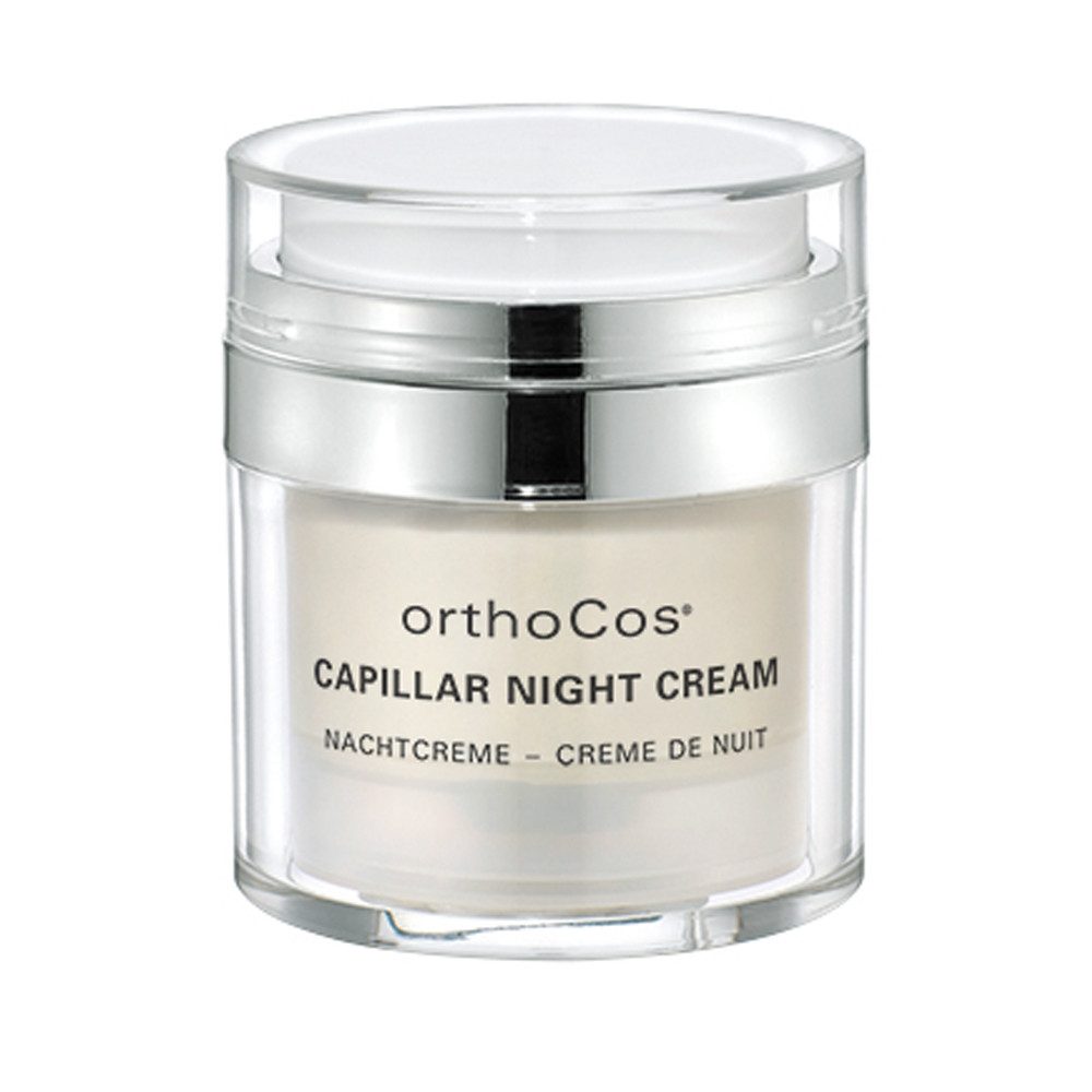 Für die couperöse Haut, Rosacea. Diese reichhaltige Nachtpflege versorgt die empfindliche, gerötete und zu erweiterten Äderchen neigende Haut mit viel Feuchtigkeit. Durch die hohen, sich in ihrer Wirkung potenzierenden Anteile von Rosskastanie, Ruscus und Rutin werden die Gefäßwände der Kapillaren in der nächtlichen Regenerationsphase der Haut repariert und gefestigt. Gerinnungshemmende Wirkstoffe verbessern zudem die kapillare Blutzirkulation und bauen Stauungen in den Blutgefäßen ab. Auf diese Weise wird einer weiteren Ausbreitung von erweiterten Äderchen vorgebeugt. Außerdem sorgen exakt auf die Probleme strukturschwacher Haut abgestimmte essentielle Fettsäuren und Modukine™ für die Wiederherstellung einer intakten Lipidbarriere. orthoCos® CAPILLAR NIGHT CREAM ist auch als begleitende Hautpflege bei Couperose und Rosacea geeignet.