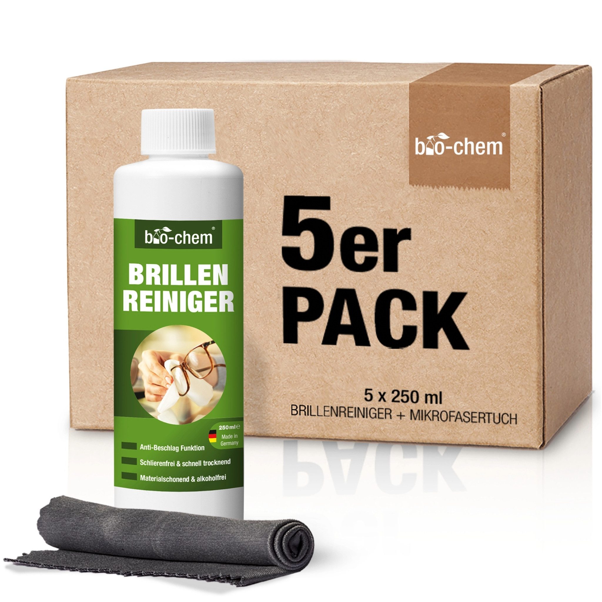 Set beinhaltet | Brillenreiniger 5x 250 ml + Mikrofasertuch |