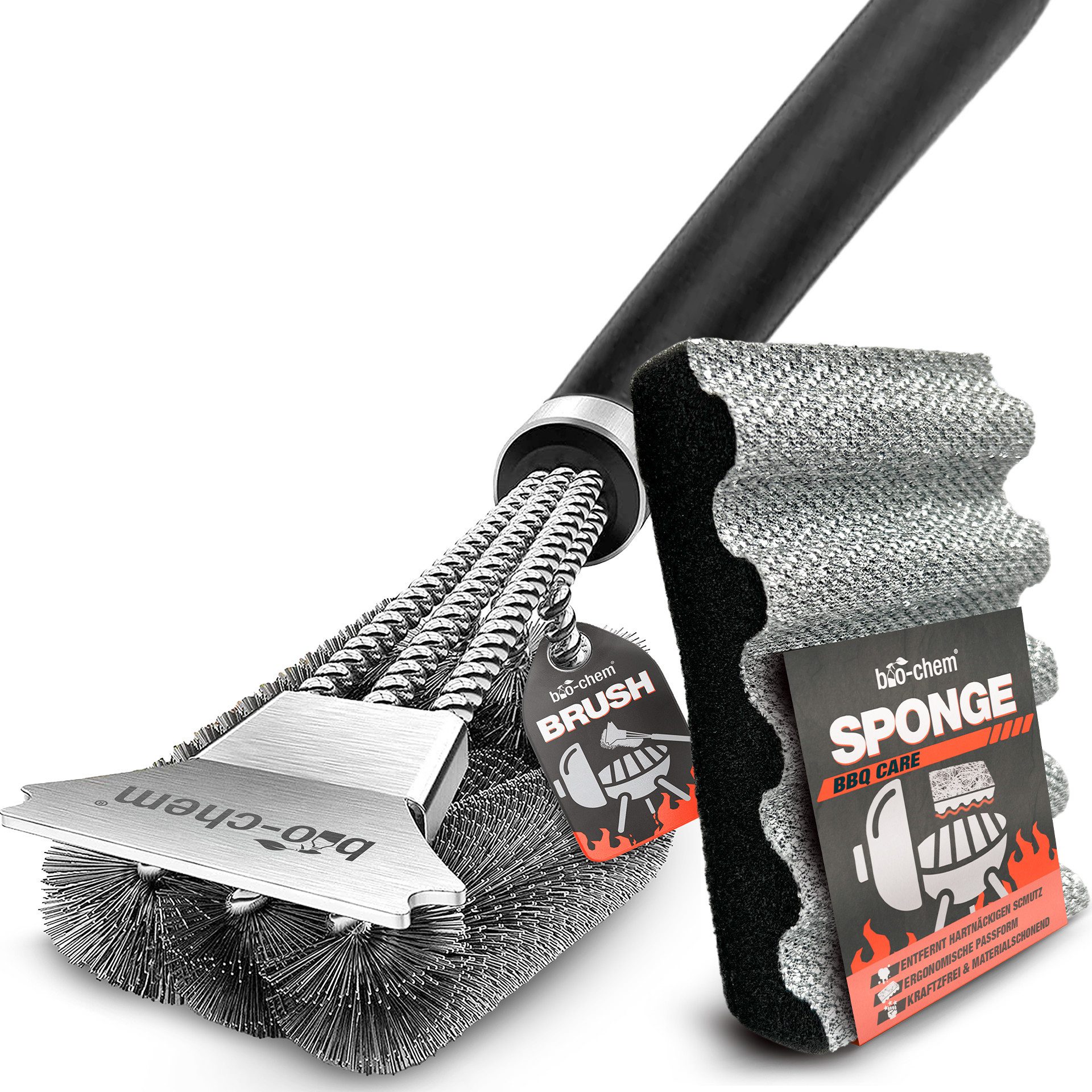 Grillzubehör-Set für effiziente Reinigung. Bürste & Schwamm entfernen hartnäckigen Schmutz & Ablagerungen. Hochwertig verarbeitet & leicht zu benutzen.