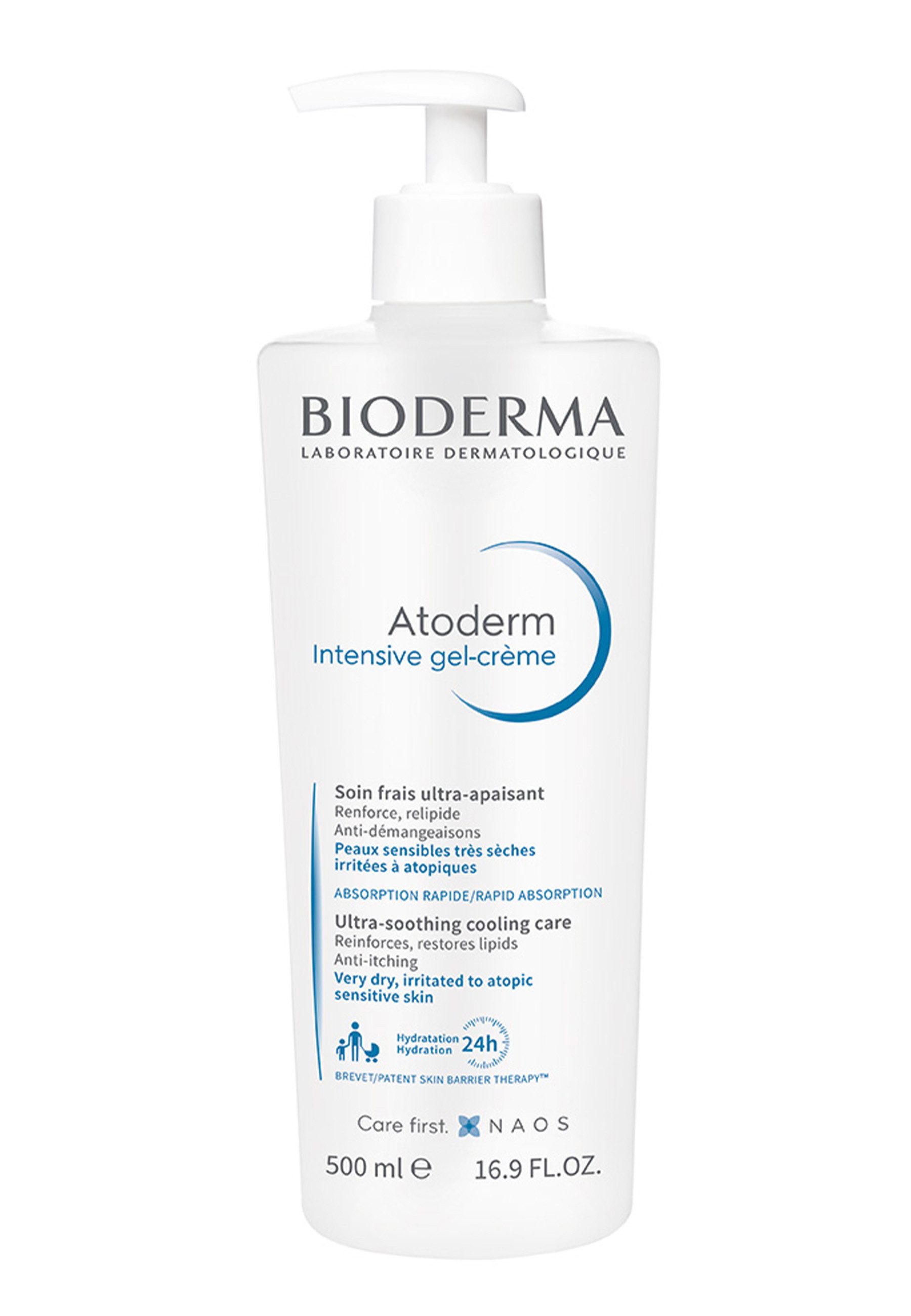 Das nährende, kühlende und beruhigende Körperpflegegel Atoderm Intensive gel-crème versorgt sehr trockene, irritierte, juckende, zu Neurodermitis neigende Haut. Die reparierende Gel-Crème ist therapiebegleitend für die der ganzen Familie geeignet. Die Formulierung respektiert die Biologie der Haut und bringt sie in ihr natürliches Gleichgewicht zurück. Unparfümiert.
