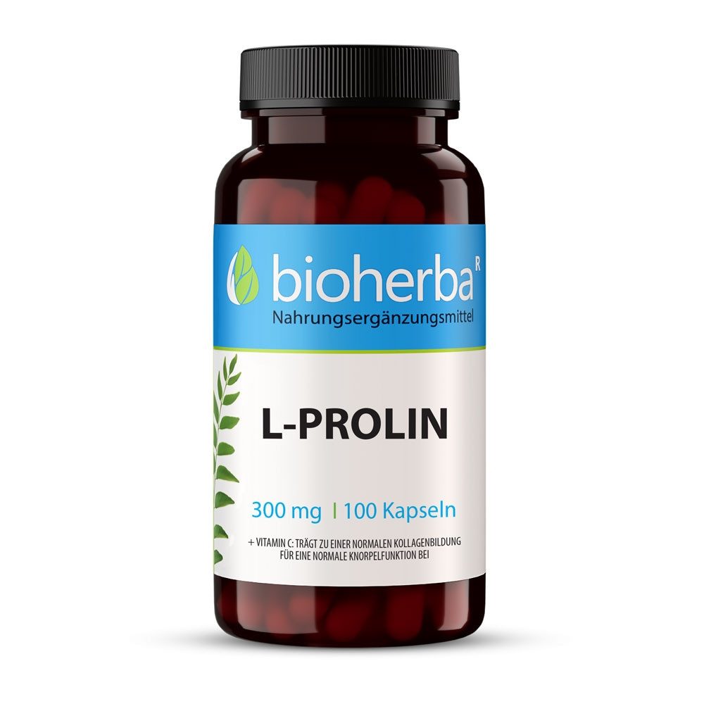 Entdecken Sie L-Prolin 300 mg mit Vitamin C von Bioherba – eine ausgewogene Kombination in praktischer Kapselform.