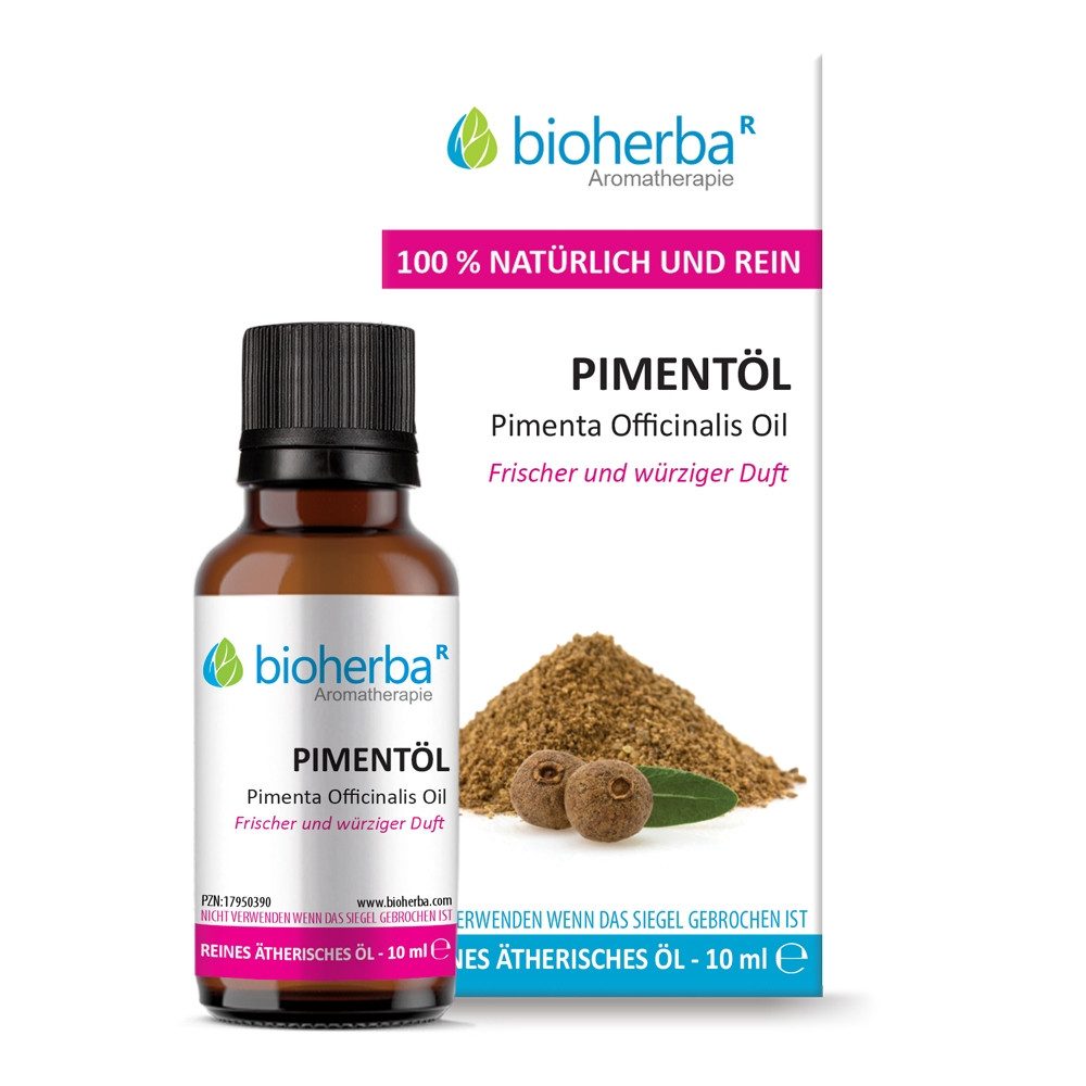Inhaltsstoffe | Pimenta Officinalis Oil. 10 ml reines ätherisches Pimentöl. |