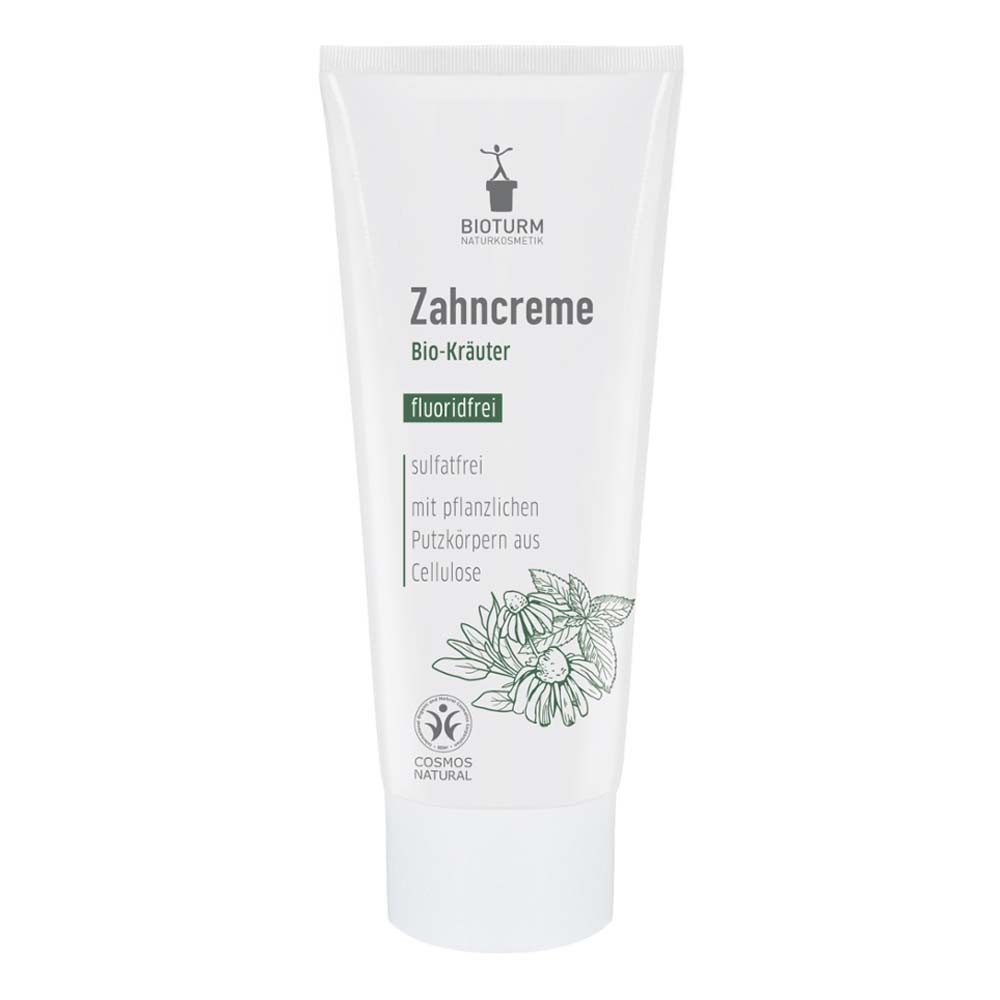 Besonders milde pflanzliche Putzkörper aus Cellulose reinigen die Zähne effektiv und entfernen dabei den Zahnbelag äußerst schonend. Die neuartigen Putzkörper erzielen eine hohe Reinigungswirkung, sind aber gleichzeitig sanft zum Zahnschmelz. Die Zahncreme Bio-Kräuter ist besonders für empfindliche Zähne und Zahnfleisch geeignet, denn Bio-Extrakte aus Kamille, Salbei und Melisse beruhigen und schützen. Die regelmäßige Anwendung der sulfatfreien Zahncreme trägt zum Schutz vor Karies und dem Erhalt vom Zahnfleisch bei. Zusätzlich entsteht durch Bio-Pfefferminze ein angenehm frisches Mundgefühl.