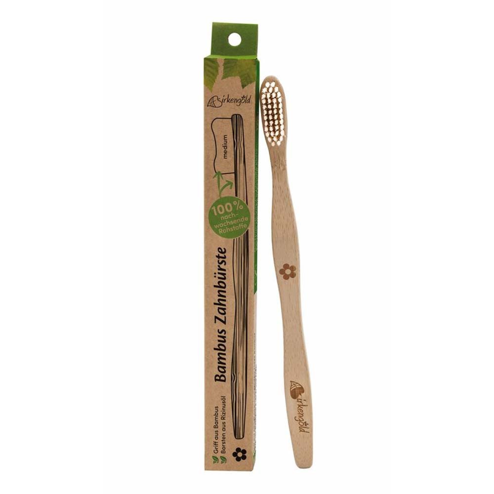 Birkengold® 100% nachhaltige Bambuszahnbürste mit Rizinusölborsten Erwachsene.