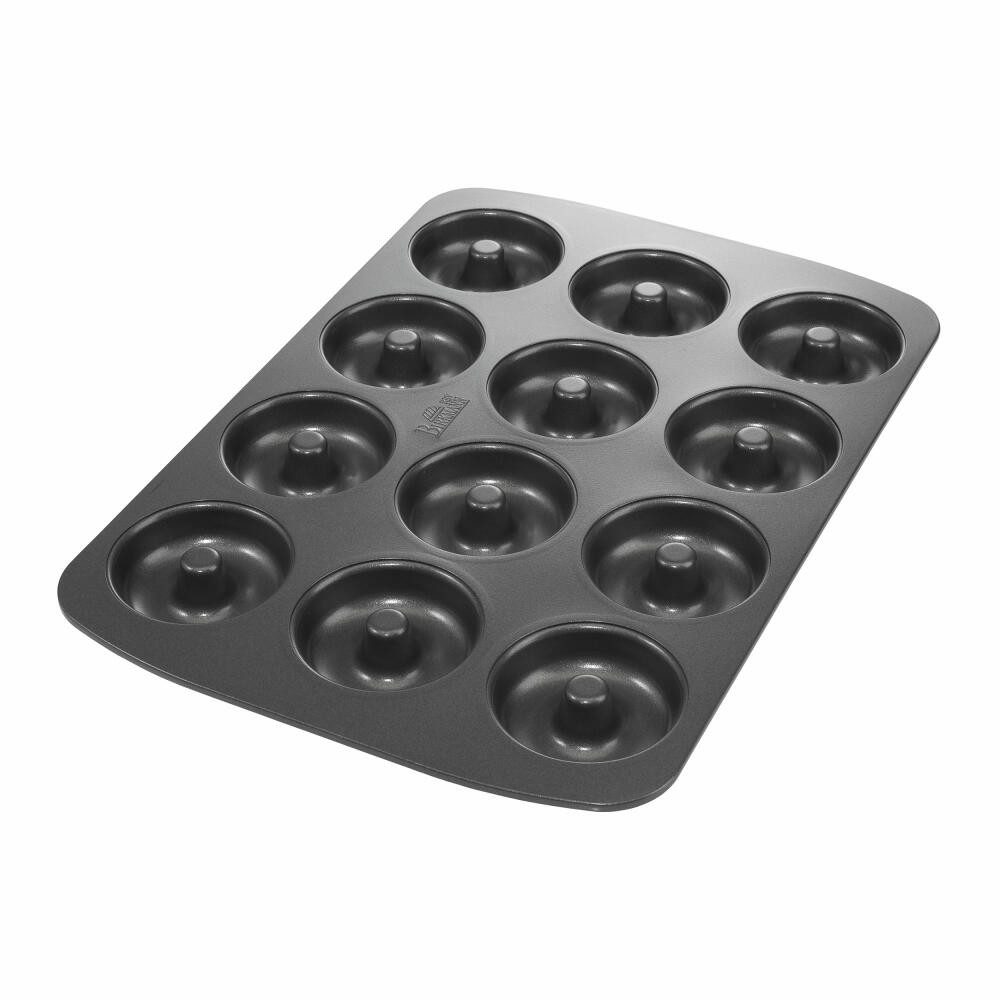 Lieferumfang | 1 Birkmann Easy Baking Donut-Blech, Donut Backform, Backblech, Donutform, Schablone, für 12 Donuts je 7 cm, Schwarz, 881624 |