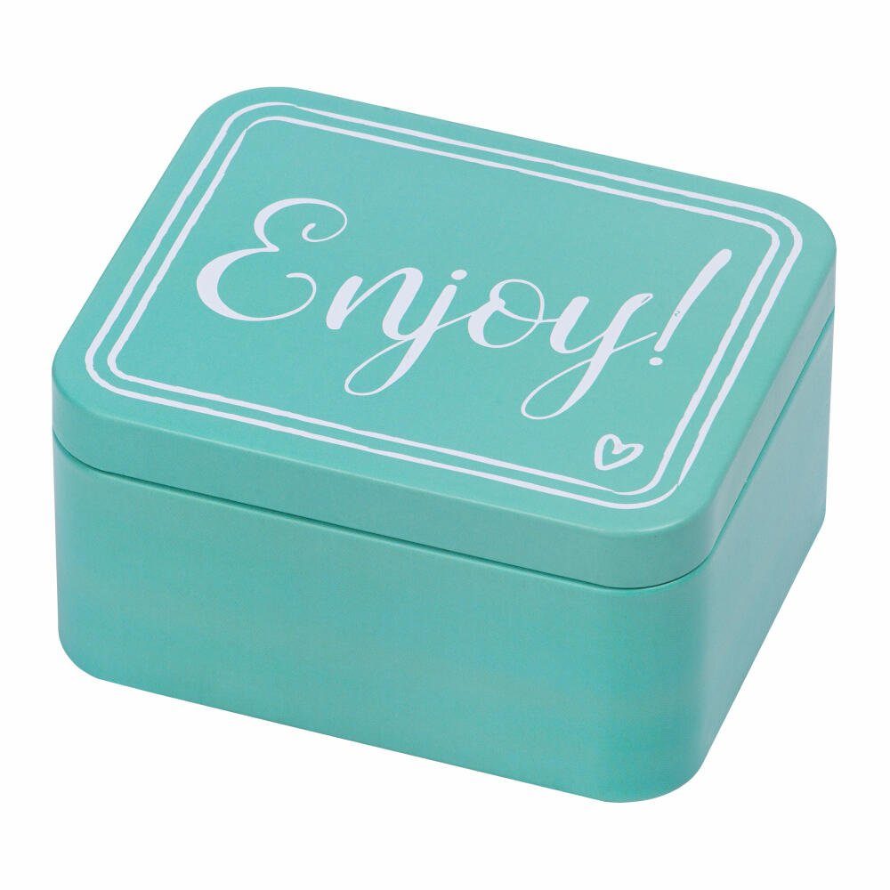 Lieferumfang | 1 Birkmann Geschenkbox Enjoy, Blechdose, Geschenkdose, Box, Weißblech, Türkis, 12 x 10 x 6 cm, 438224 |