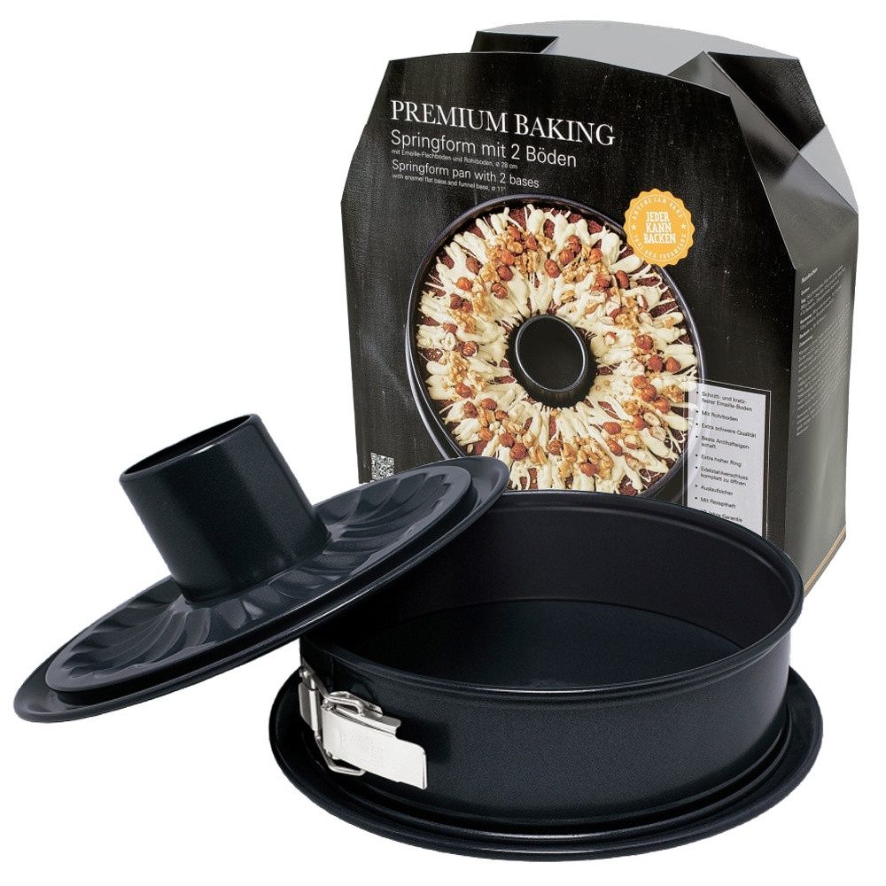Deine neue Springform kommt mit Rohrboden und Flachboden und ist in den Durchmessern 26cm und 28cm aus der hochwertigen Premium Baking Serie von Birkmann erhältlich. Die Springformen der Serie Premium Baking von RBV Birkmann verfügen über eine exzellente Marken-Antihaftbeschichtung von Whitford und zeichnen sich deshalb durch beste Antihafteigenschaften aus. Aufgrund der außergewöhnlichen Materialstärke leiten sie die Wärme besonders gleichmäßig weiter. Außerdem ist der auslaufsichere Flachboden emailliert und dadurch äußerst kratz- und schnittfest. Der Edelstahlverschluss ist komplett zu öffnen, sodass sich der extrahohe Rand sicher vom Kuchen löst und besonders einfach und gründlich zu reinigen ist.