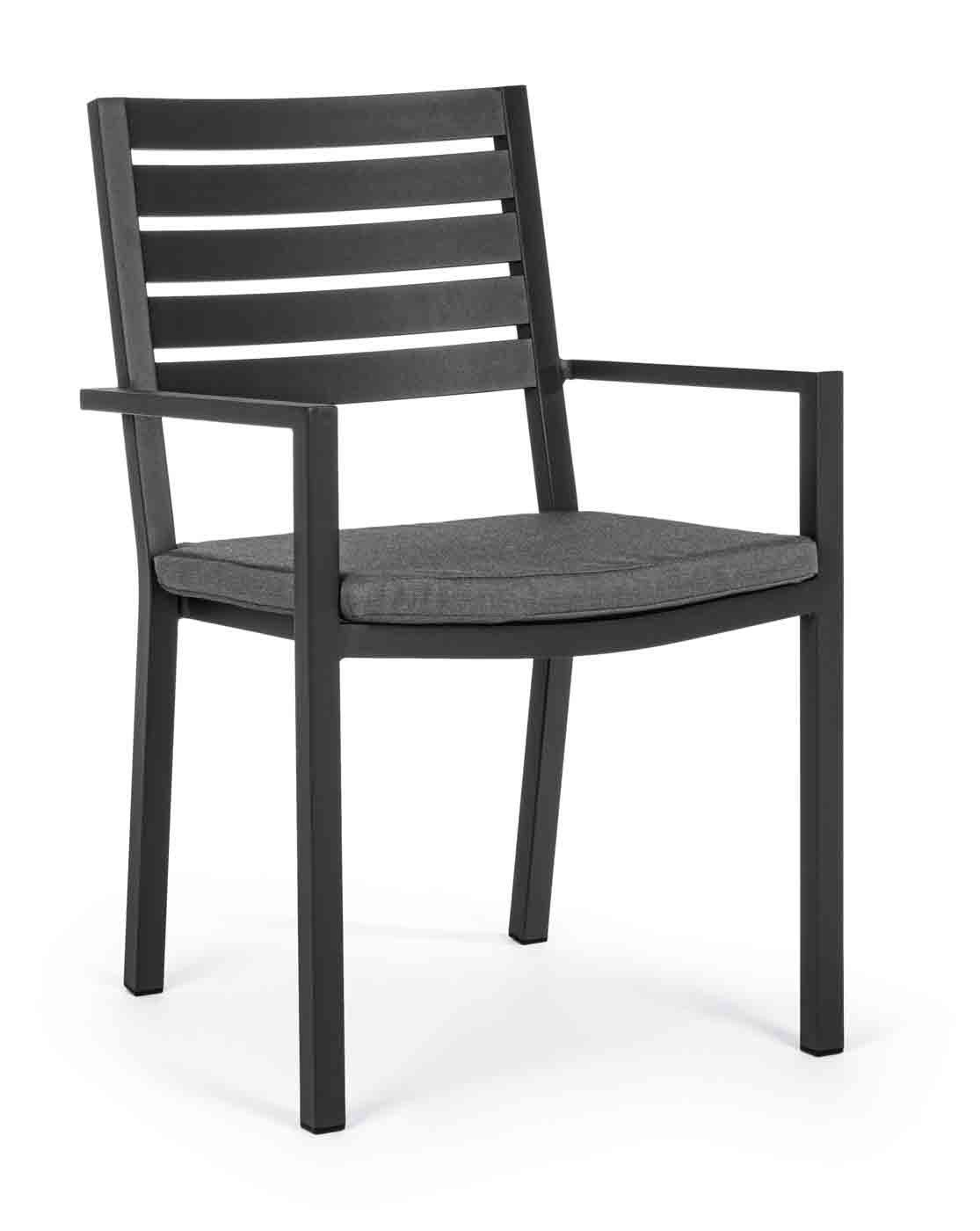 Gartenstuhl Helina mit abziehbaren Kissen für angenehmen Sitzkomfort. Ideal zum kombinieren mit verschiedensten Gartentischen und zudem platzsparend stabelbar.