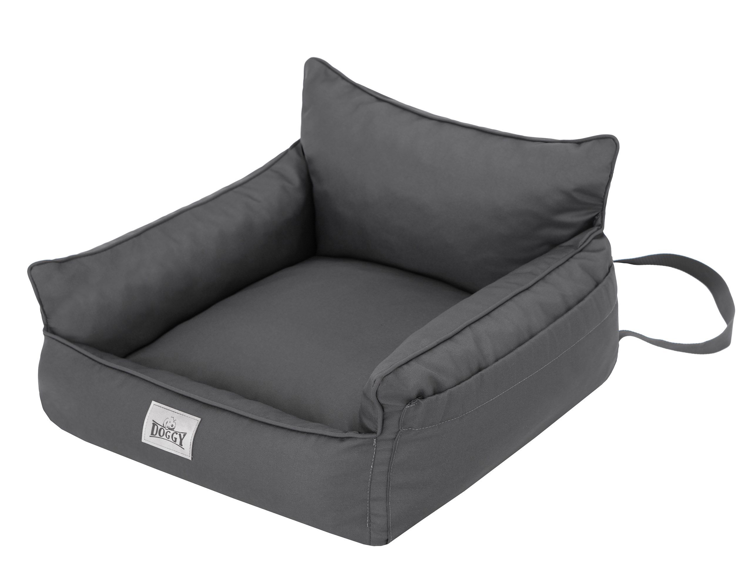 GROßE TASCHE - Der Sitz ist mit einer Tasche im Format 40x16 cm ausgestattet, in der Sie verschiedene Kleinigkeiten oder das Spielzeug Ihres Haustiers aufbewahren können.
