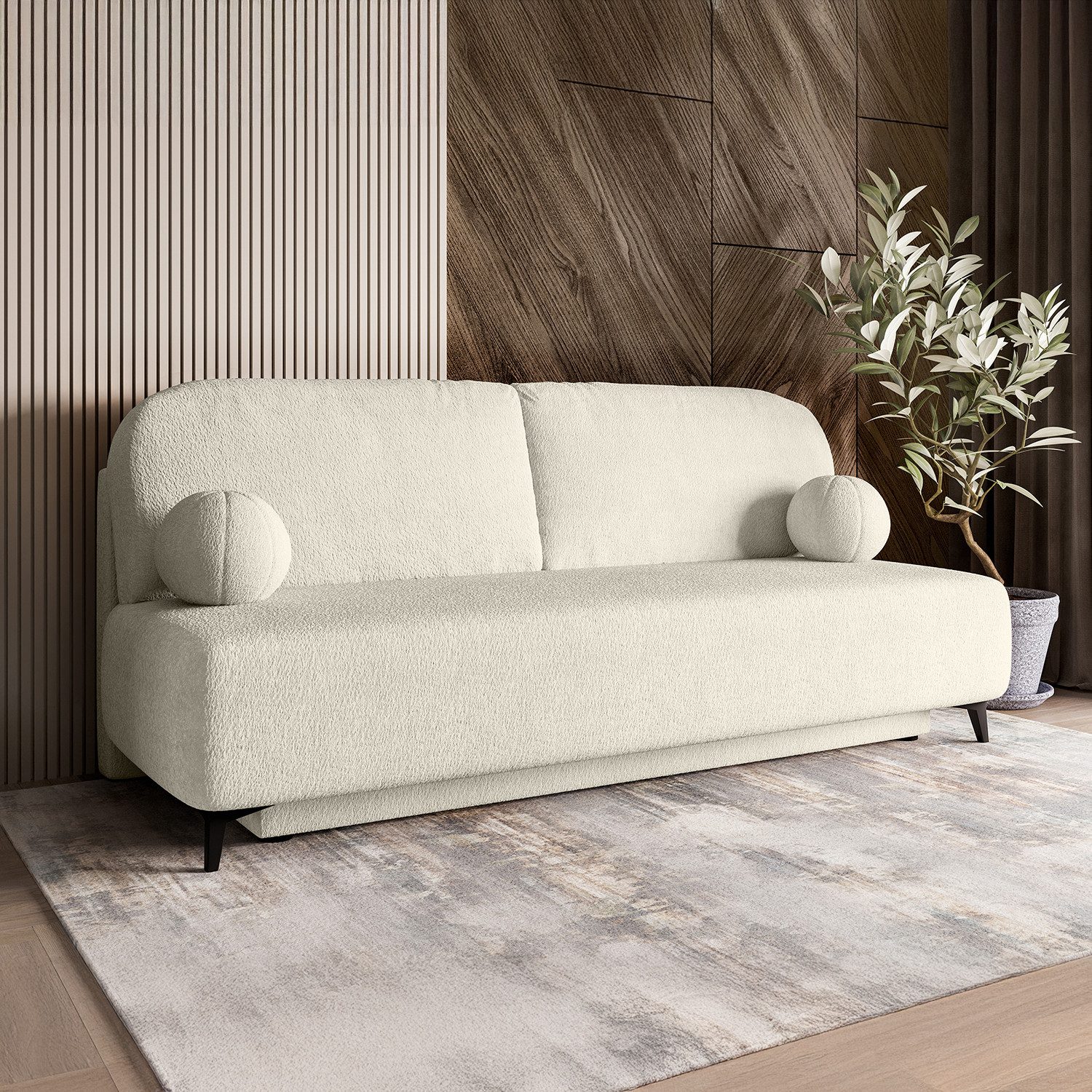 Dieses stilvolle 3er-Sofa überzeugt mit seinem klaren, minimalistischen Design und einer durchdachten Funktionalität. Der hochwertige Bouclé-Bezug (540 g/m²), die angenehme Polsterung aus Bonellfedern und Schaumstoff sowie die praktische MOS-Ausziehfunktion machen es zu einem unverzichtbaren Möbelstück für jedes Zuhause.