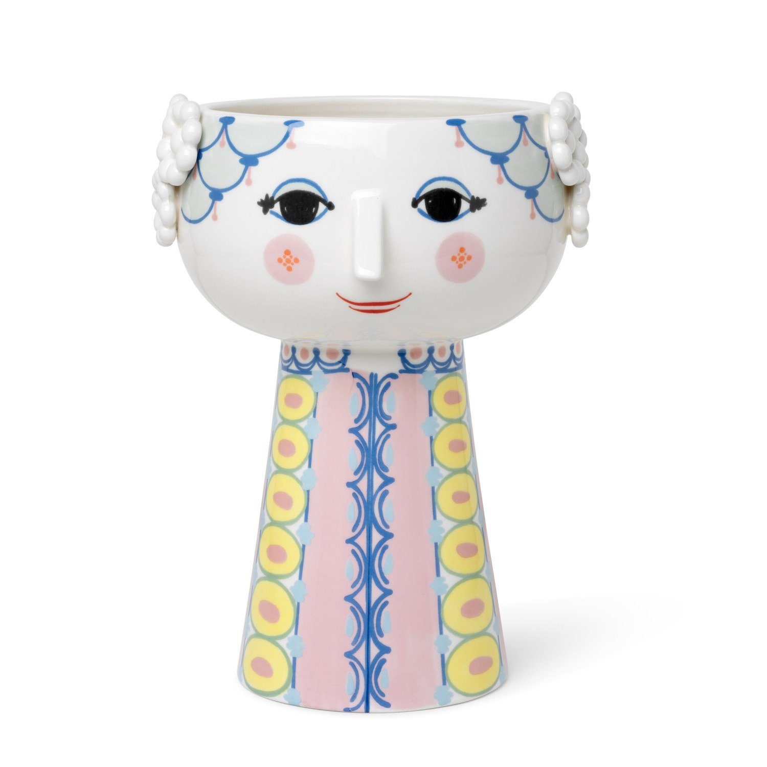 Die pinke Vase mit dem Namen Eva von Björn Wiinblad ist eine neue Erweiterung im lustigen Меню von Vasen mit liebevollen Gesichtern. Das zarte Dekor aus rosafarbenen und hellgelben Blüten und Kreisen unterstreicht den kindlichen Ausdruck im Gesicht der Eva-Vase. Mit ihrer Höhe von 23 cm ist die Vase bestens für lange Blumen und üppige Blumensträuße geeignet.