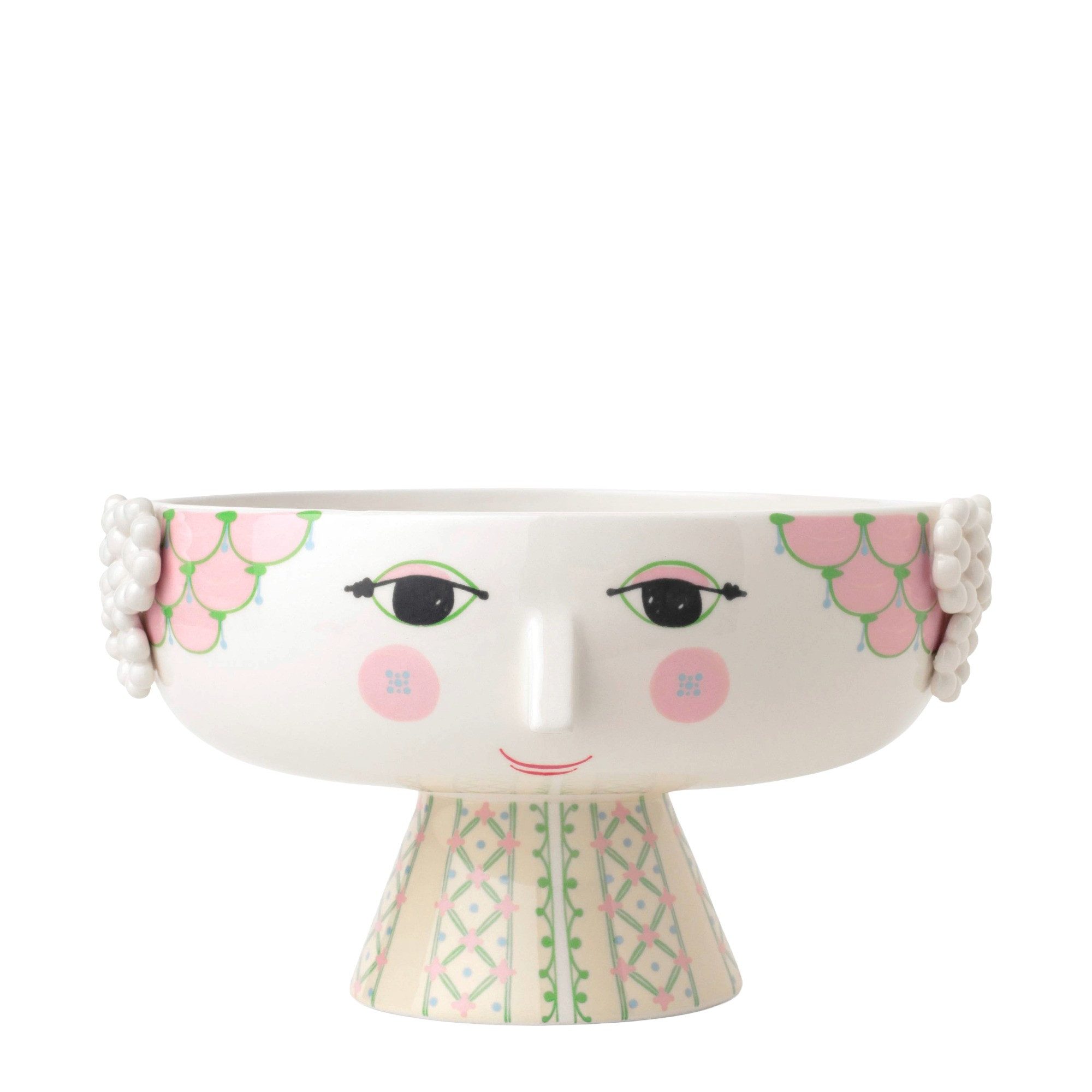 Die Bjørn Wiinblad Eva Schale auf Fuß in Soft Pink verbindet verspielte Eleganz mit unverwechselbarer Persönlichkeit. Das charakteristische Frauengesicht mit mandelförmigen Augen und spitzer Nase ist eine Hommage an Wiinblads ursprüngliche Illustrationen. Jede Schale verkörpert die Lebensfreude und Fantasie des dänischen Künstlers, dessen Werke bis heute Designliebhaber begeistern.