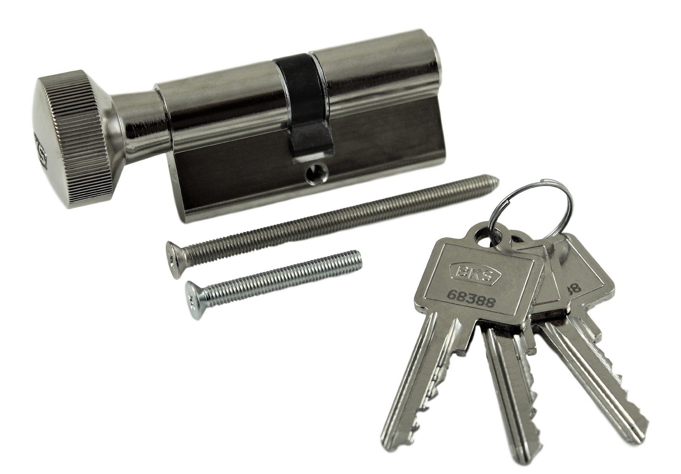 Der Zylinder ist aus vernickeltem Messing und passt durch seine silberne Farbe zu jedem Türdesign.