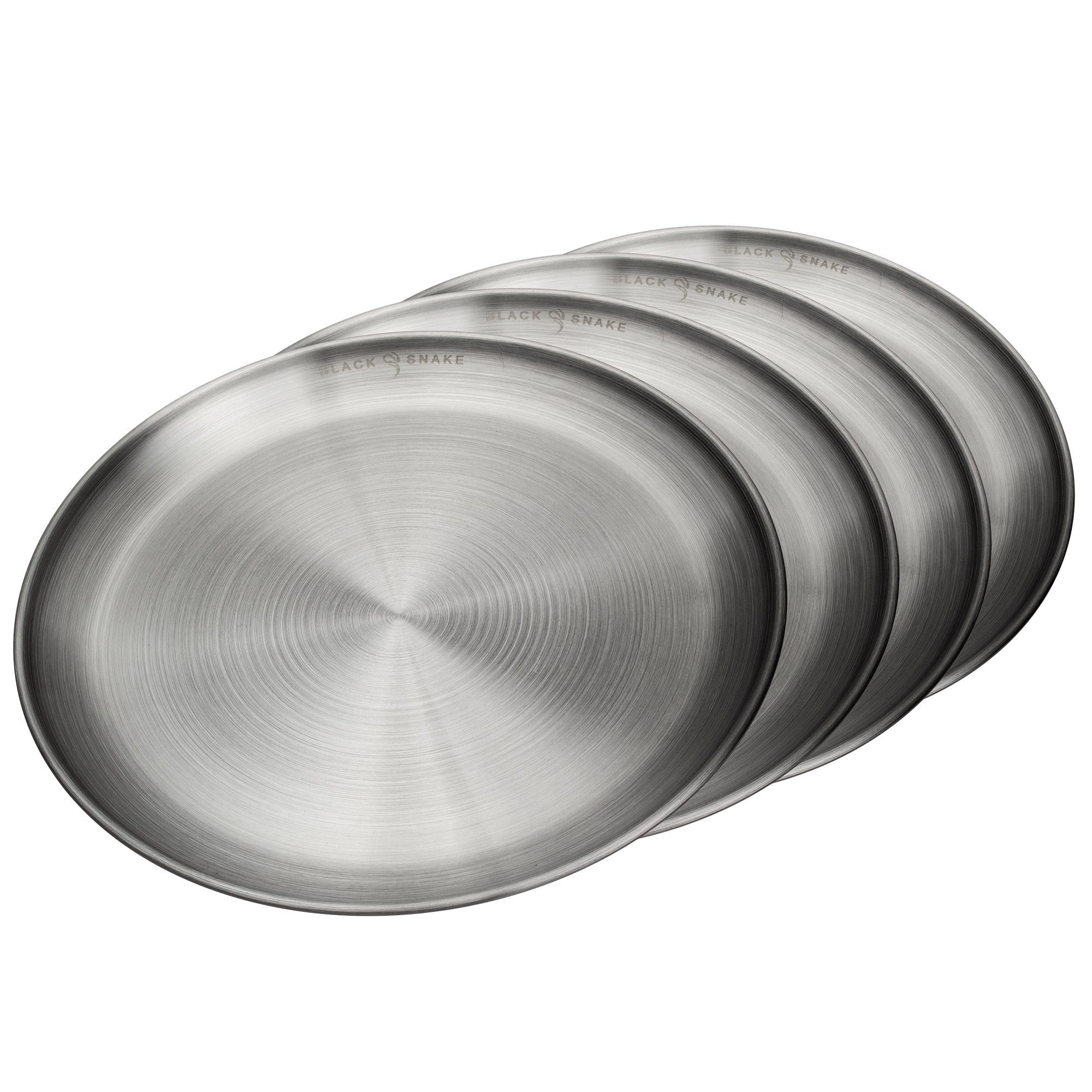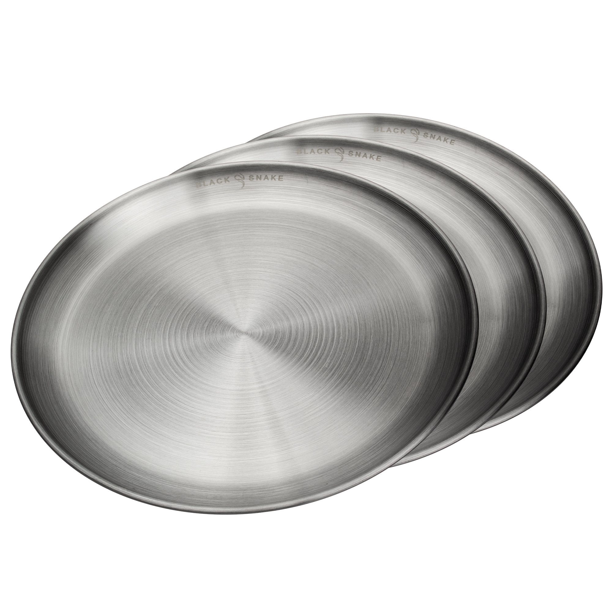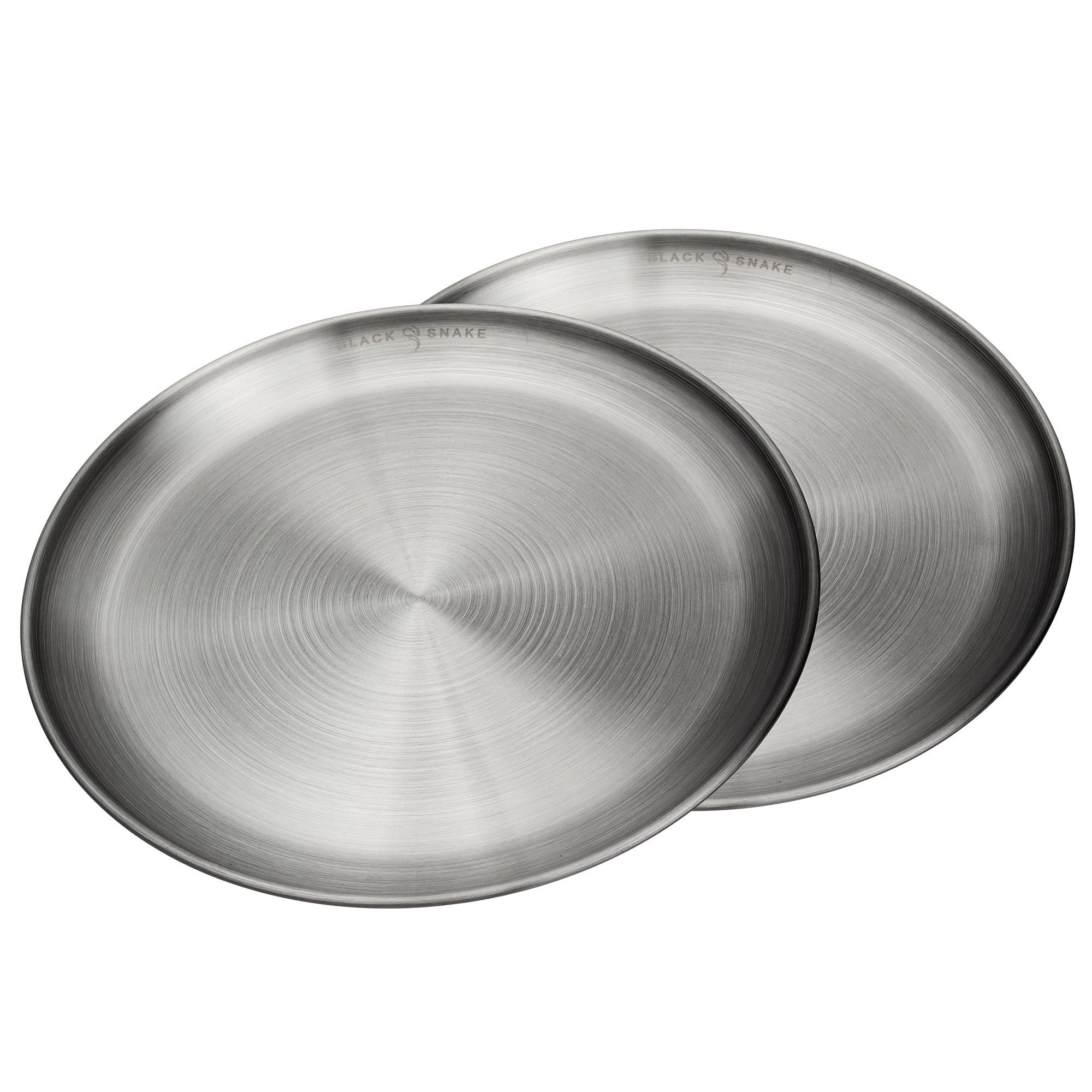 Flache Teller aus Edelstahl im praktischen Set - ideal für Camping, Picknick und Outdoor-Küche