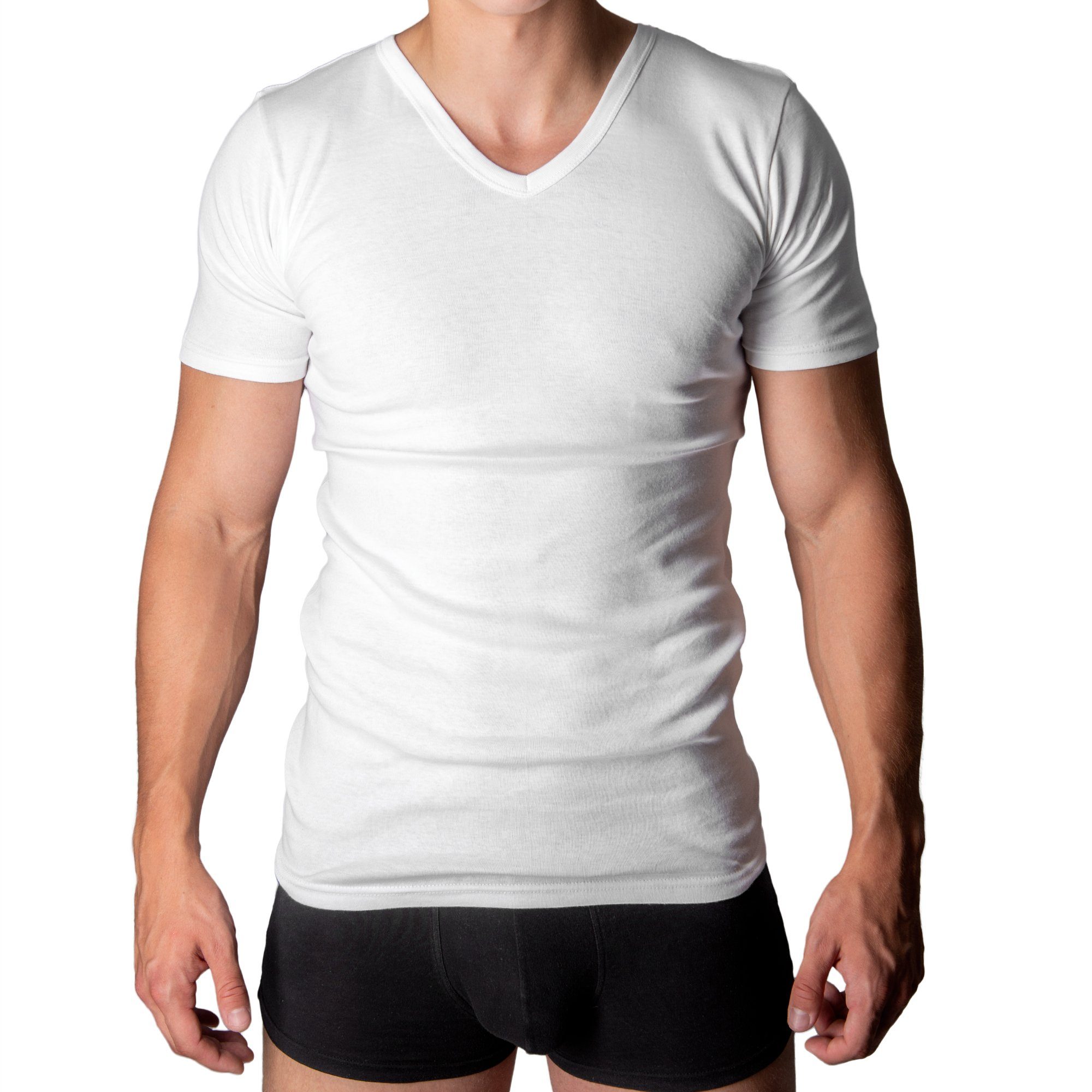 · Unterhemd Shirt für Herren im 2-er Set · kurzarm mit V-Neck · atmungsaktiv und angenehm zu tragen · Feinripp ohne Seitennähte · vielseitig einsetzbar für Beruf und Freizeit · Material: 100% gekämmte Baumwolle · waschmaschinenfest bis 40°C