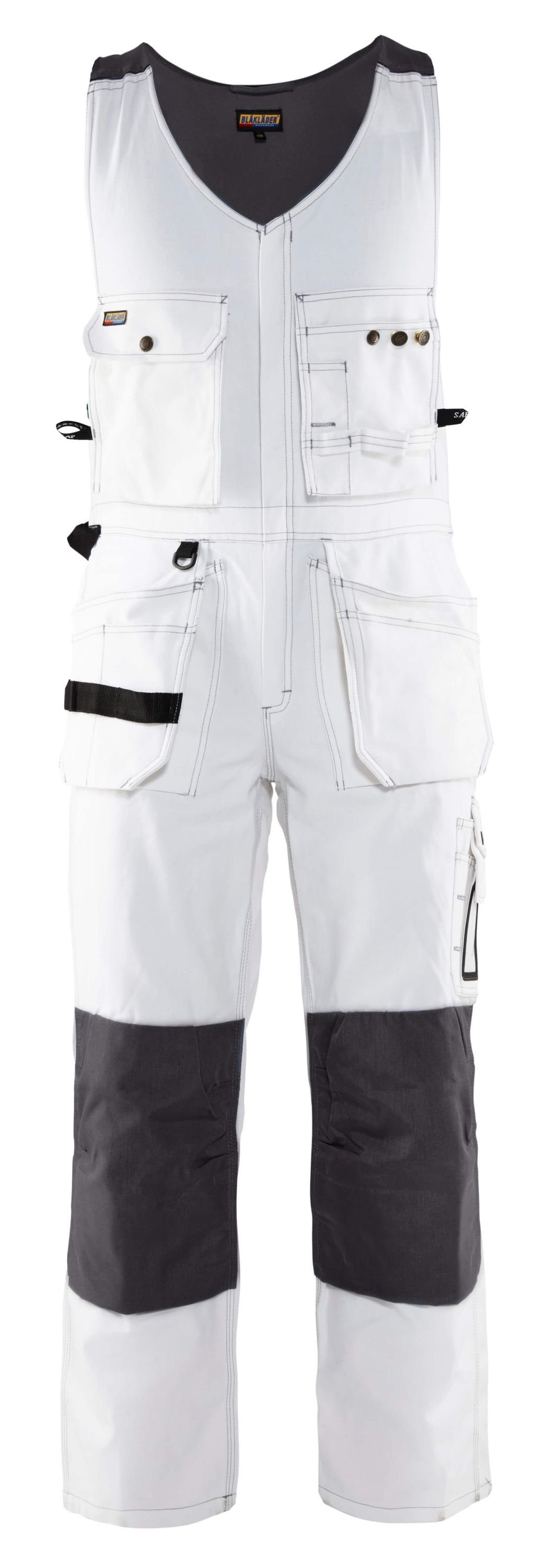 Lose hängende Brusttaschen mit Druckknöpfen und Sicherheitsriemen, eine mit Patte und eine mit Stifttasche, Patentknöpfen und Messerhalter