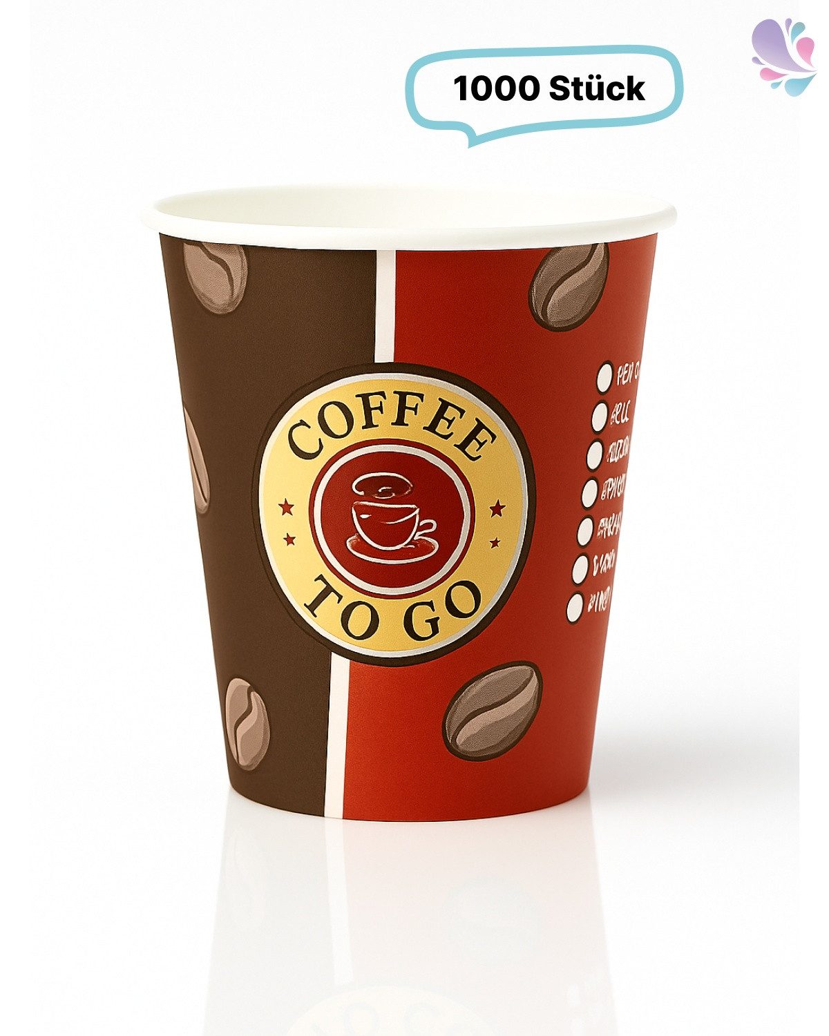 Die Kaffeebecher "Topline" mit einem Fassungsvermögen von 8oz (ca. 0,20 l) sind vielseitig einsetzbar und besonders gut für Heißgetränke wie Kaffee, Latte Macchiato, Cappuccino, Tee, Chai Latte und heiße Schokolade geeignet. Mit einem Durchmesser von 80 mm bieten sie eine hohe Stabilität und eignen sich ideal für den "Coffee to go" -Verkauf. Die Becher bestehen aus Hartpapier und sind in einer Verpackungseinheit von 1.000 Stück erhältlich. Sie finden Anwendung in Cafés, Bäckereien, Restaurants, Büros, Imbisswagen und vielen anderen Umgebungen, in denen der bequeme Genuss von Heißgetränken unterwegs gefragt ist. Die Kaffeebecher "Topline" bieten eine praktische und umweltfreundliche Lösung für den To-go-Ausschank von Heißgetränken in unterschiedlichen Situationen.
