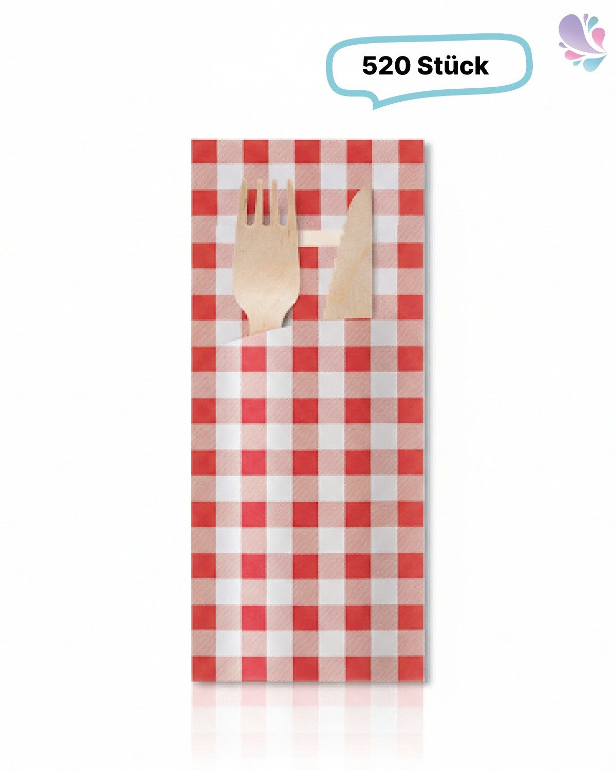 Diese Bestecktaschen mit integrierter Serviette bieten eine stilvolle und hygienische Lösung zur Präsentation und Organisation von Besteck am Tisch. Erhältlich in verschiedenen Designs wie "Stripe Orange," "Stripe Champagner," "Stripe Lime," "Stripe Weiß," sowie in den eleganten "Marble"-Вариантыn Schwarz, Creme, Grau, und Blau sowie "Rot-Kariert," passen sie ideal zu unterschiedlichen Einrichtungskonzepten und Veranstaltungen. Mit ihren Maßen von 8,5 x 20 cm bestehen sie aus stabilem Offsetpapier und bieten eine integrierte 2-lagige Zellulose-Serviette. Die Verpackung erfolgt in Kartons mit je 520 Stück. Diese Bestecktaschen verbinden praktischen Nutzen mit dekorativem Design und eignen sich für eine Vielzahl von Gastronomie- und Eventeinsätzen.