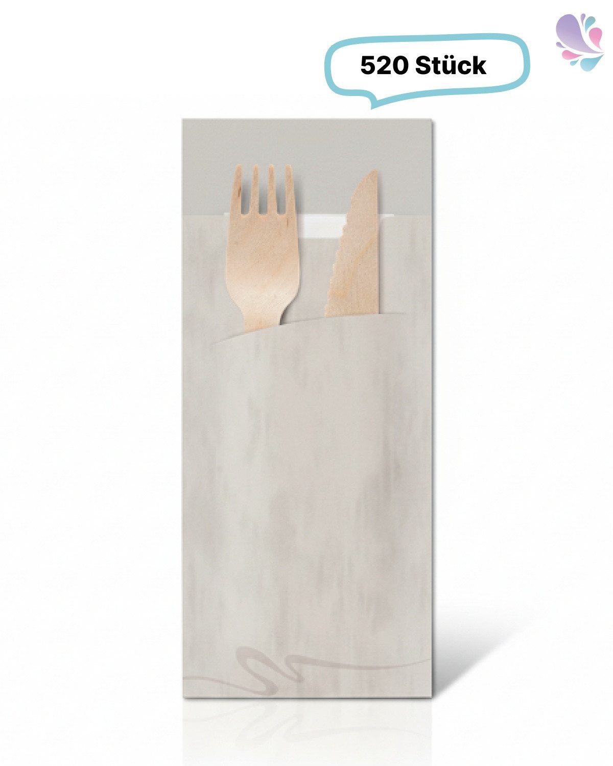 Die Bestecktasche mit integrierter Serviette bietet eine ideale Lösung für eine elegante und hygienische Tischgestaltung. Perfekt für Gastronomie und Events, optimiert sie den Tischservice und ergänzt die Einrichtung stilvoll.