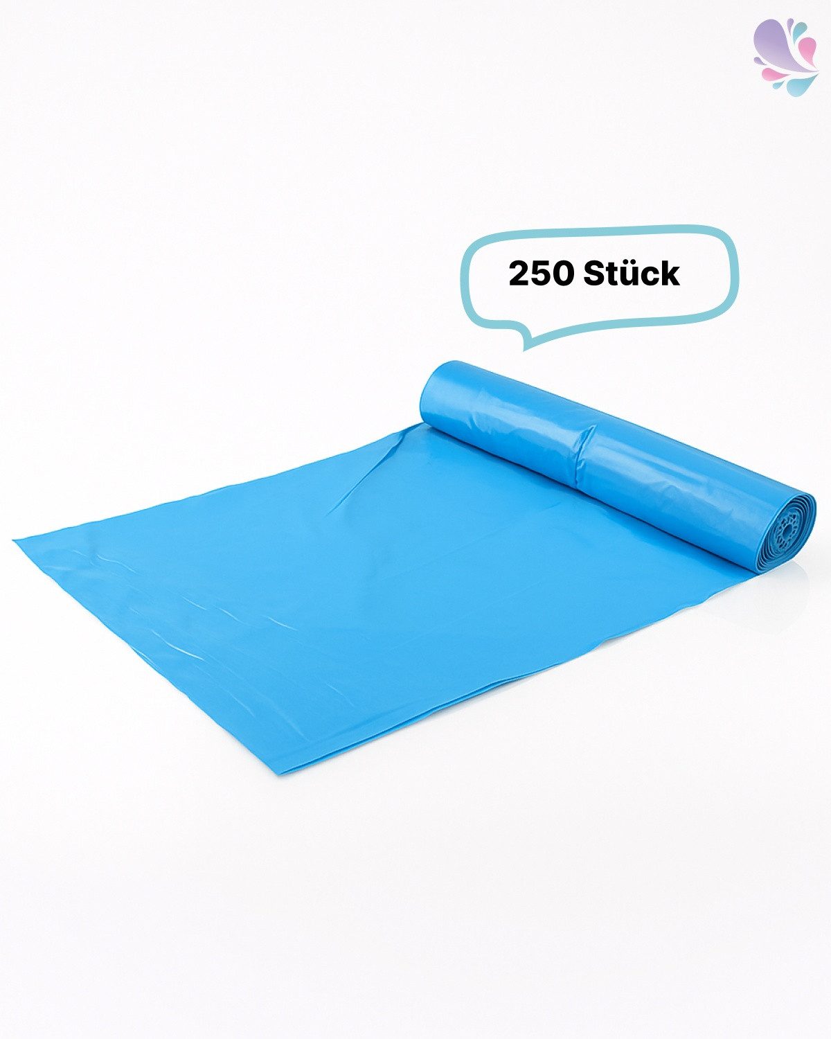 Die Qualitäts-Müllbeutel mit einem großzügigen Fassungsvermögen von 140 Litern, einer starken Stärke von 40my und in der Farbe Blau sind eine zuverlässige Lösung für die effiziente Abfallentsorgung. Jedes Set enthält 250 Müllbeutel, aufgeteilt in 10 Rollen mit je 25 Stück.