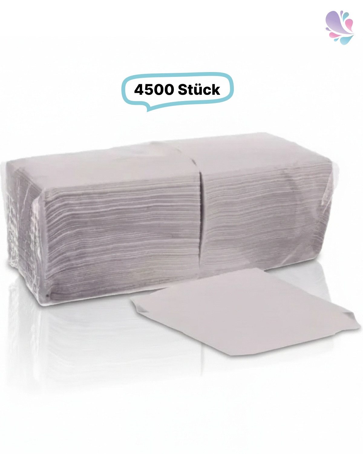 Die weißen Servietten sind aus hochwertigem 100% Zellstoff gefertigt und weisen eine reißfeste sowie weiche Beschaffenheit auf. Mit Abmessungen von 33 x 33 cm im entfalteten Zustand gehören sie zur 33er-Größe, sind zweilagig und weisen eine 1/4 Falz auf. In einer Verpackungseinheit von 9 x 500 Stück sind insgesamt 4.500 Servietten enthalten.