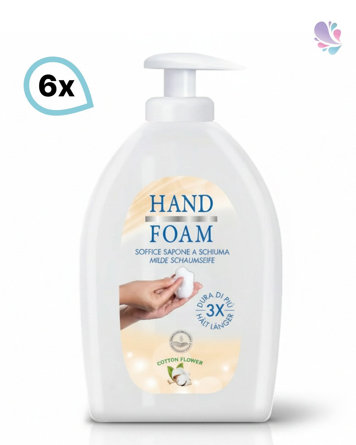 Das Handseifen-Vorteilspack besteht aus 6 Pumpflaschen mit jeweils 400 ml Inhalt. Die hochschäumende Schaumseife zeichnet sich durch einen geringeren Verbrauch im Vergleich zu Flüssigseifen aus, was sie äußerst ergiebig macht. Mit milden und hautschonenden Eigenschaften reinigt sie gründlich dank wertvoller kosmetischer Rohstoffe und lässt sich leicht abspülen. Zudem bietet sie eine rückfettende und pflegende Wirkung, wodurch sie angenehm seidige Haut und weiche Hände hinterlässt. Diese Schaumseife ist dermatologisch getestet, was ihre Hautverträglichkeit unterstreicht.
