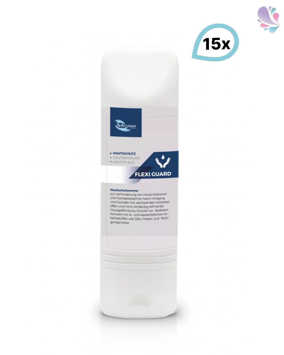 Das Flexi Guard SET besteht aus 15 Tuben Hautschutzcreme, jede Tube mit einem Inhalt von 100 ml. Diese siliconfreie Hautschutzcreme dient der Prävention von Kontaktekzemen und Hautirritationen, insbesondere in Arbeitsumgebungen, in denen der Kontakt mit wechselnden Arbeitsstoffen und nicht eindeutig definierten Hautgefährdungen stattfindet. Flexi Guard bietet Schutz vor direktem Hautkontakt mit öl- und wasserlöslichen Arbeitsstoffen wie Ölen, Fetten und Reinigungsmitteln, ohne dabei selbst einen unangenehmen Kontakt mit der Haut zu verursachen.