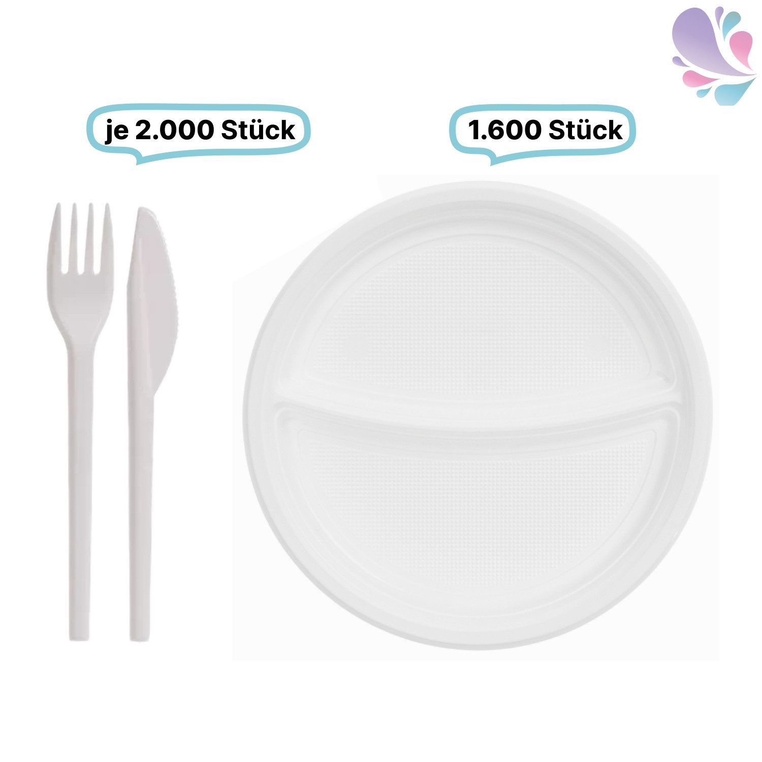 SET: Menüteller & Besteck, Mehrwegbesteck, 1600x Teller & 2000x Besteck, weiß, robust, Premium Qualität, verschiedene Вариантыn