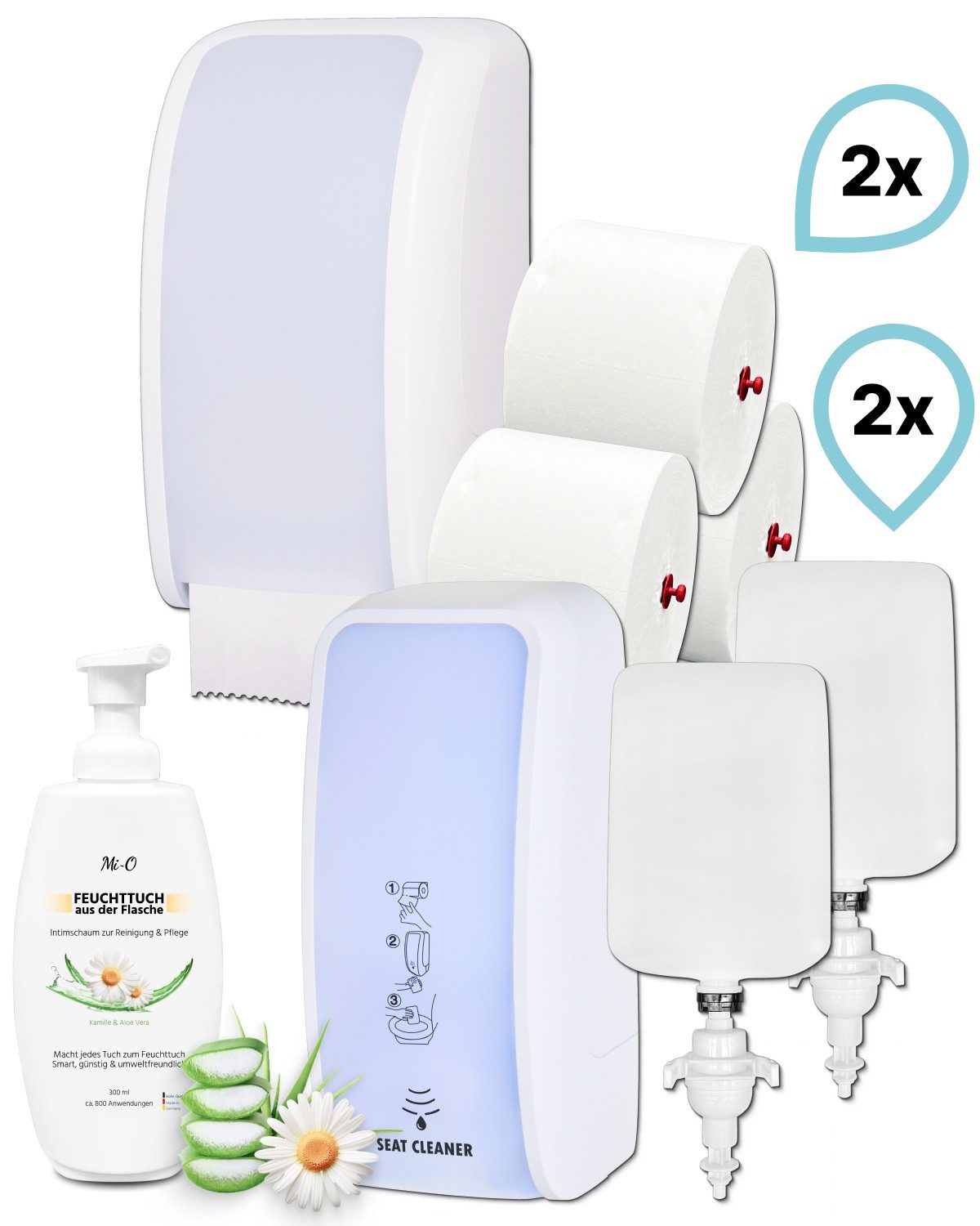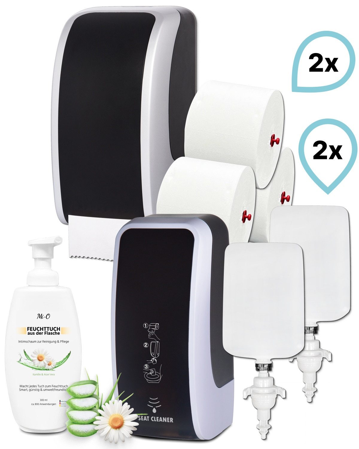 Das Toilettenkabinen Komplett-SET ist der ideale Einstieg in die Welt der professionellen Betriebshygiene. Neben einem innovativen Doppelrollen-Toilettenpapierspender beinhaltet das Set einen Spender für Toilettensitzreinigung sowie einen Intim Reinigungs- & Pflegeschaum. Ebenso enthalten sind 2 ultra ergiebige, 3-lagige Toilettenpapierrollen mit 90 Meter und 2 höchst ergiebige Flächen- und Toilettensitzschaumreiniger mit jeweils 1.000 ml.